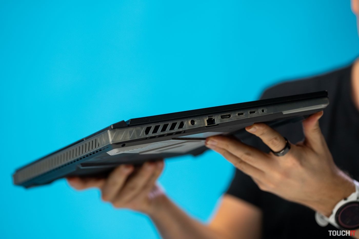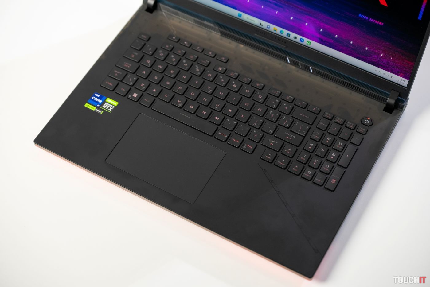 Klávesnica a touchpad výraznejšie neprekvapia. Ich kvalita je na dobrej úrovni, pričom membránová klávesnica ponúka dobrý zážitok pri písaní aj pri hraní. K dispozícii je päť multimediálnych tlačidiel a pomerne veľký touchpad. Klávesnica je podsvietená, efekty si môžete prispôsobiť cez aplikáciu Armoury Crate. Podobne ako v prípade väčšiny notebookov, touchpad si môžete deaktivovať, čo je užitočné napríklad pri hraní pomocou myšky.