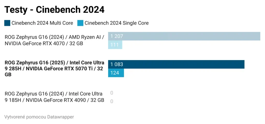 Tohtoročný model som testoval s procesorom Intel Core Ultra 9 285H a grafickou kartou GeForce RTX 5070 Ti. Nižšie uvádzam porovnanie výkonu v testoch: