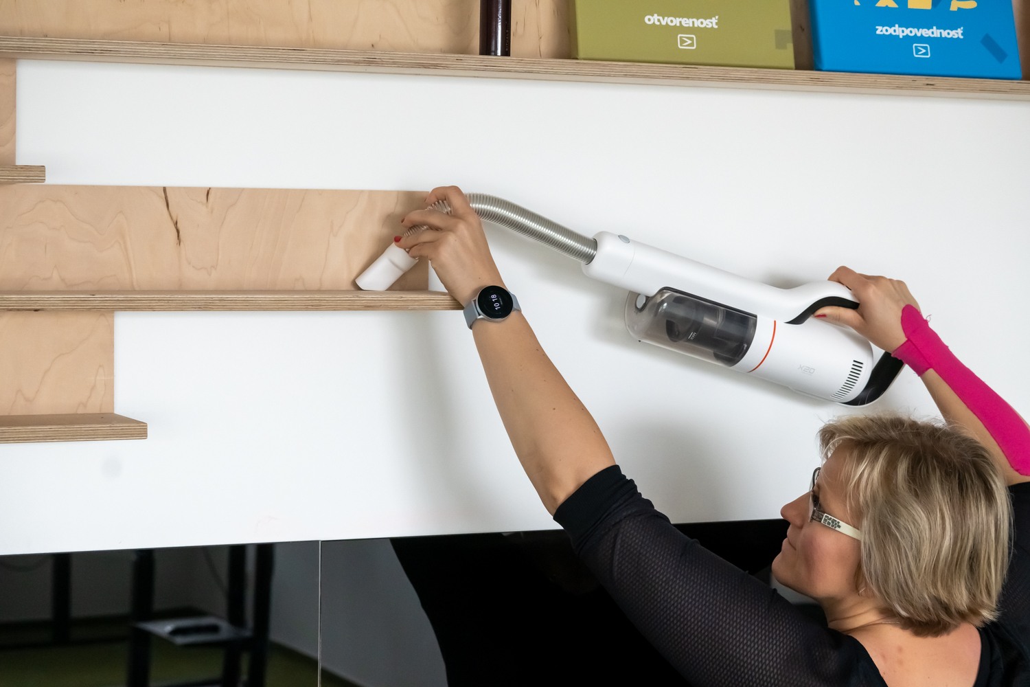 Tyčový vysávač Roidmi X20 je elegantný a šikovný pomocník nielen do domácnosti. Počas nášho testovania sme vysávač používali v dvojizbovom byte, no vyskúšali sme ho v aute a zobrali sme ho aj na chatu, kde sme naplno využili všetky nadstavce. Väčšinou sme vysávali v štandardnom režime, ktorý postačoval na dôkladné povysávanie všetkých plôch, okrem kobercov s dlhším vlasom, kde sme krátkodobo použili stredný režim vysávania. Kapacita batérie postačovala na kompletné upratanie bytu, či auta. Veľmi praktické je automatické LED osvetlenie, ktoré odhalí skryté nečistoty na tmavých miestach a ocenili sme aj jednoduchosť bezdrôtového nabíjania. Výborná je aj možnosť vysávania a mopovania podláh v jednom, čo nám ušetrilo čas, pričom manipulácia s mopovacím nadstavcom je veľmi jednoduchá. Cena: 429,54 eur Zapožičal: WESTech Viac informácií o produkte>>