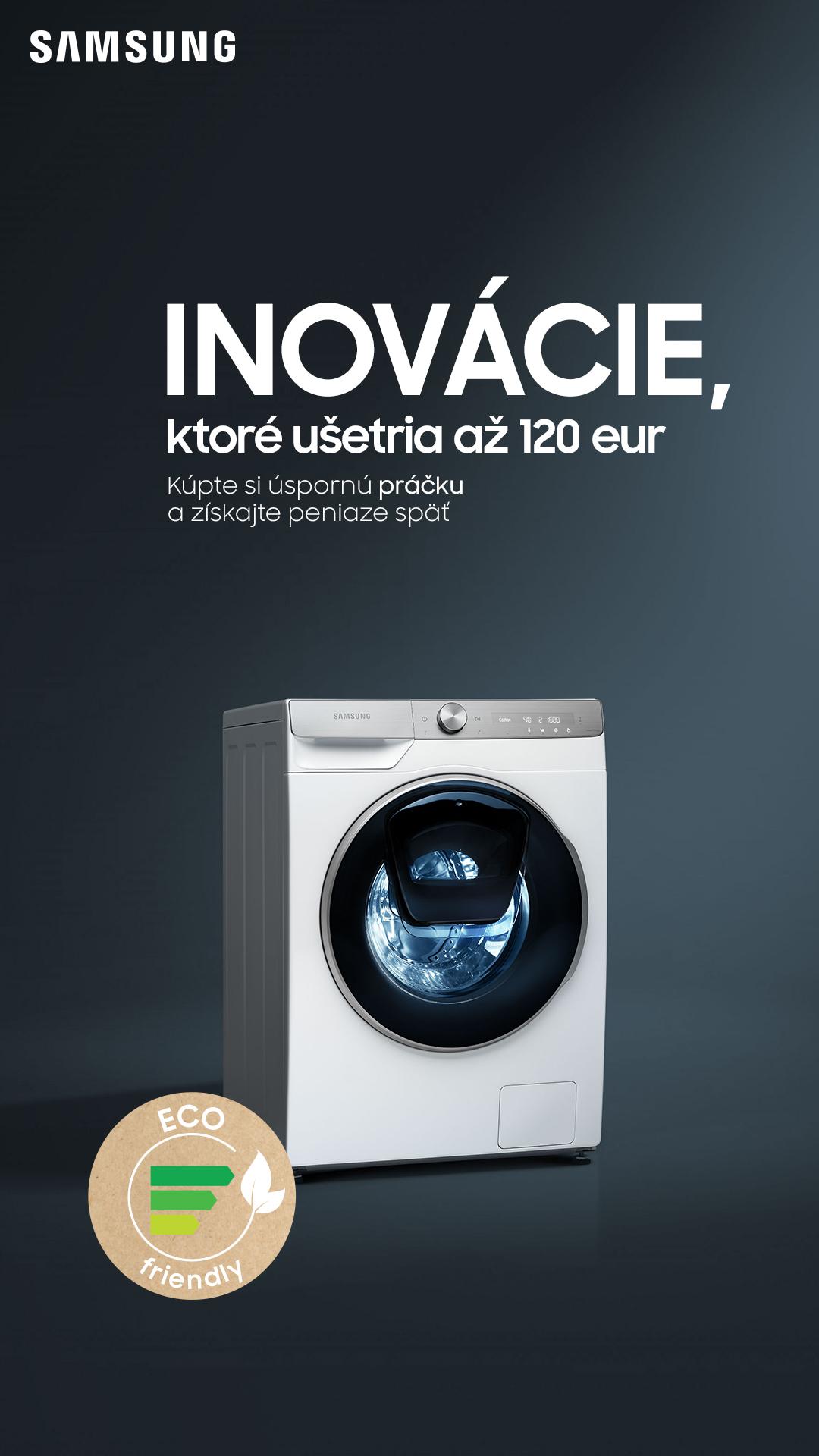 Bonusy sa vzťahujú aj na pokročilé modely s inovatívnymi technológiami, napríklad chladničky vybavené funkciou All around cooling, ktorá zaisťuje rovnomerné chladenie v celom priestore chladničky vrátane všetkých rohov, či na modely vybavené umelou inteligenciou. Ide napríklad o kombinované chladničky s mrazničkou vybavené funkciou True No Frost, ktorá zabraňuje vytváraniu námrazy a šetrí energiu. Tieto chladničky používateľ nemusí na rozdiel od bežných chladničiek odmrazovať. Ak potrebujete viac priestoru pre chladené a mrazené potraviny, môžete bonus využiť na kúpu niektorej z amerických chladničiek vybavených dvojitým chladiacim systémom Twin Cooling Plus a celkovým objemom až 652 litrov. Medzi zvýhodnenými domácimi spotrebičmi sú aj parné práčky s technológiou QuickDrive, vďaka ktorej sa prací cyklus skráti až na polovicu. Tieto práčky sa vyznačujú veľmi tichým invertorovým motorom a parou dokážu vďaka dezinfekčnému programu Hygiene Care odstrániť až 99,9 % baktérií a alergénov. V závislosti od modelu potom využívajú aj umelú inteligenciu, napríklad pri voľbe pracieho programu, pri ktorej vychádza z predchádzajúcich pracích cyklov. Vďaka funkcii Add Wash a špeciálnym menším dvierkam je možné do týchto práčok pridať zabudnuté kusy oblečenia aj v priebehu pracieho cyklu. Samsung práčky pre úsporu energie používajú technológiu Aktívnej peny EcoBubble, kedy sa do bielizne dostáva priamo pena, čím sa zlepšuje výkon pri nízkej spotrebe energie. Vďaka tomu má Samsung na trhu jedno z najširších portfólií práčok v triede A.