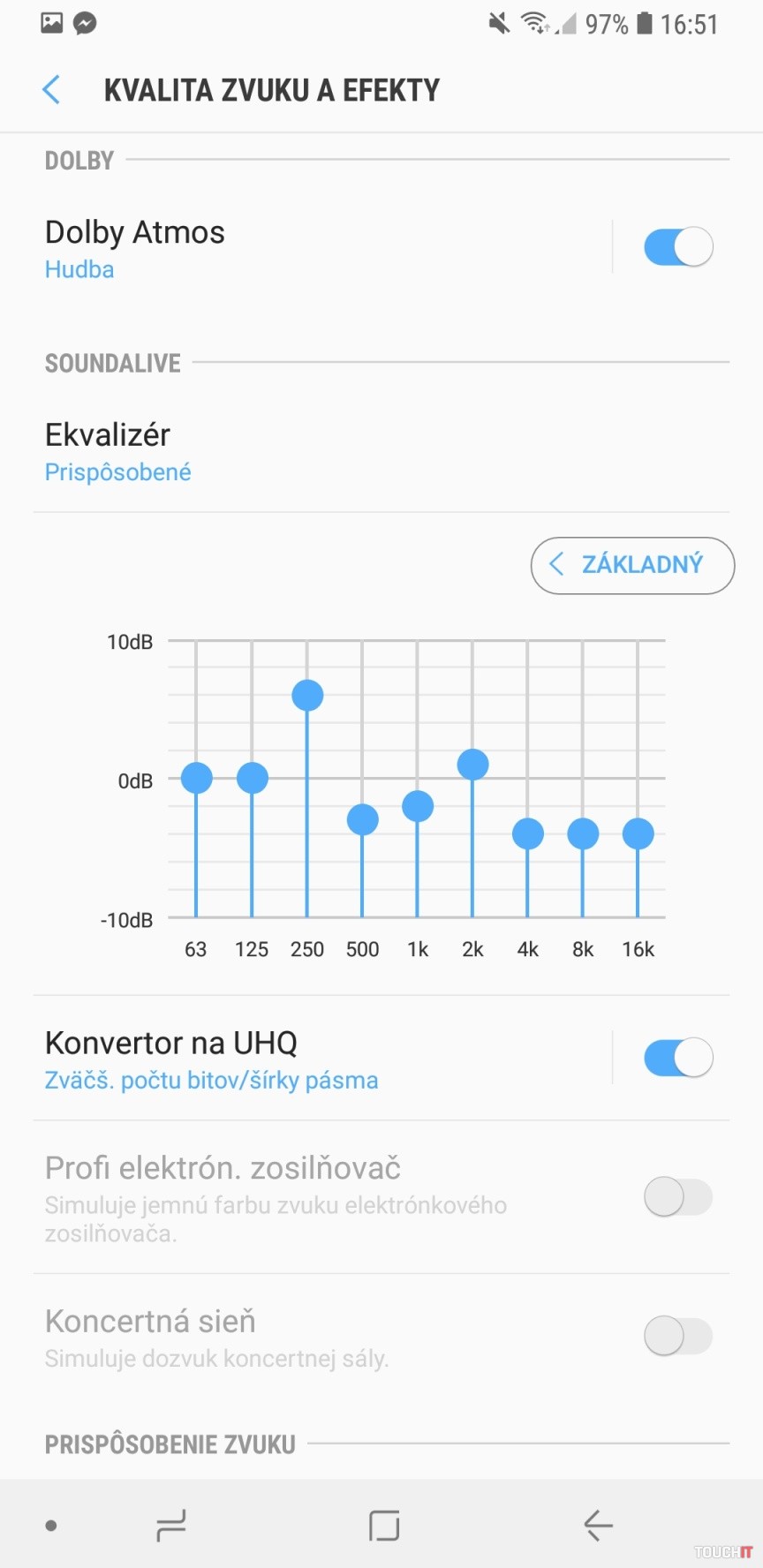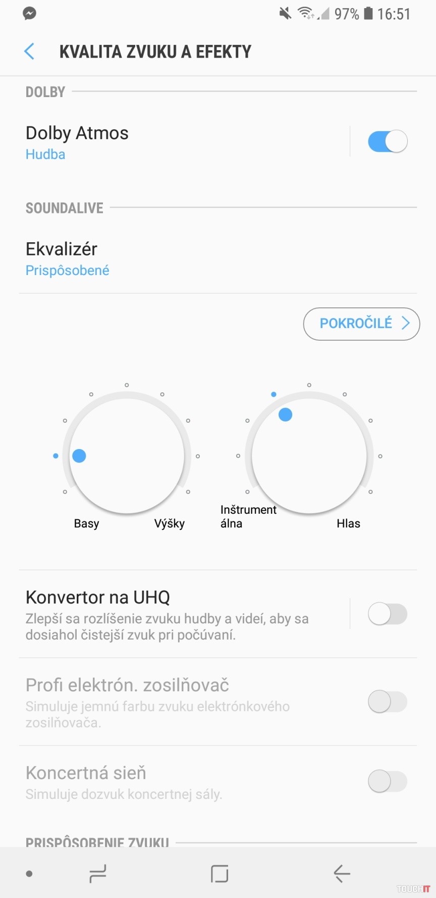 Vypočuť si obľúbenú hudbu a ešte aj vo svojej úprave s ekvalizérom? V smartfónoch Samsung to nie je žiadny problém. Galaxy A7 podporuje rozšírenie zvuku Dolby Atmos. Ako na to? Všetky nastavenia zvuku a rozšírenie kvality hudobného zážitku nájdete v časti Nastavenia – Zvuky a vibrovanie – Kvalita zvuku a efekty. Na to, aby ste využili hudobné rozšírenie Dolby Atmos, potrebujete pripojiť slúchadlá k audio konektoru alebo použiť bezdrôtové slúchadlá. V prípade, že povolíte rozšírenie Dolby Atmos, nebude možné aktivovať niektoré iné efekty a vylepšenia zvuku. Tento hudobný efekt vytvorí lepšiu dynamiku a hĺbku reprodukovaného zvuku. Na výber sú špeciálne režimy na film, hudbu a hlas. V prípade, že chcete univerzálne rozšírenie, je tu možnosť aktivovať Automatický režim. Je to najlepší režim, ktorý sa bude hodiť na akúkoľvek reprodukciu. Súčasne s týmto rozšírením sa dá aplikovať aj vlastné nastavenie ekvalizéra. Ekvalizér bude fungovať aj pre interný reproduktor smartfónu alebo drôtovo či bezkáblovo pripojené slúchadlá. Možnosť Konvertor na UHQ zvýši rozlíšenie zvuku, aby ste si svoje zväčša komprimované nahrávky vychutnali ešte kvalitnejšie. Potrebujete kvalitné slúchadlá, aby ste si čistejší zvuk vychutnali lepšie. Na menej kvalitných slúchadlách nebude znieť hudba najlepšie. Funkcia funguje s drôtovými slúchadlami.Samsung Cloud
