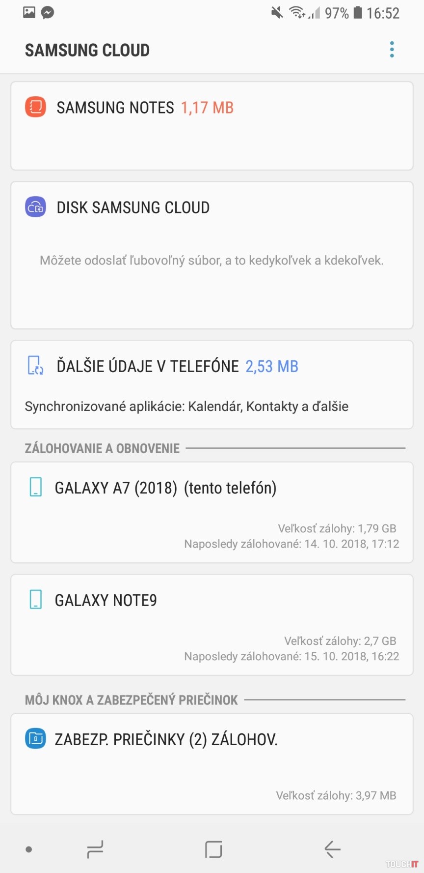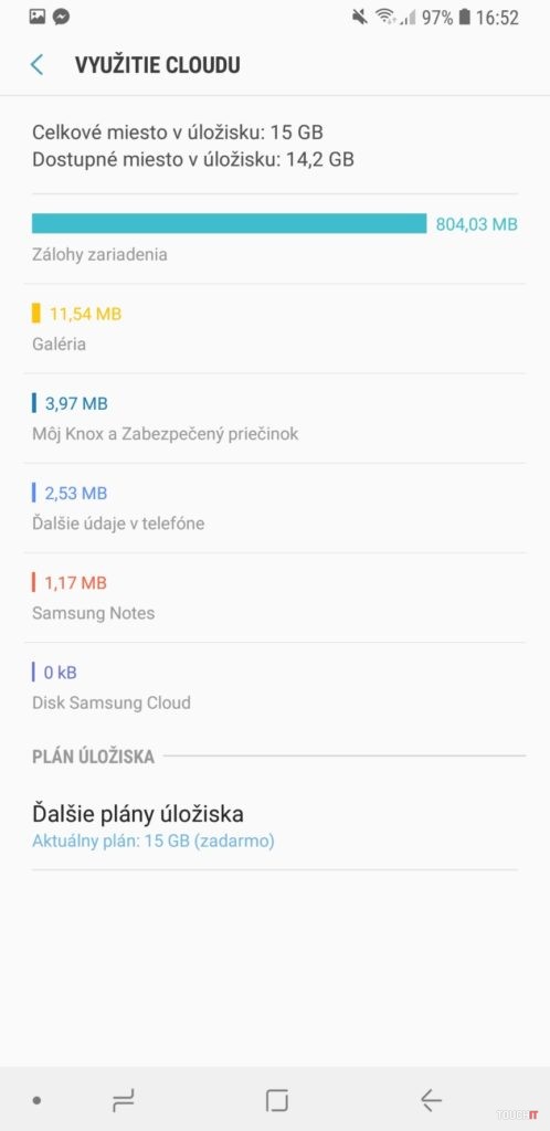 Služba, ktorá ochráni vaše fotky, dokumenty a ešte zálohuje nastavenia smartfónu. Túto službu nájdete v časti Nastavenia – Cloud a kontá – Samsung Cloud. Umožní zálohovať poznámky, kontakty, kalendár, nahrávky z diktafón a samozrejme aj obrázky a videá z galérie. Extra funkciou je zálohovanie nainštalovaných aplikácií a ich rozmiestnenia na hlavnej obrazovke. Po úplnom resete smartfónu sa všetky aplikácie obnovia presne tak ako boli. Budete sa do nich musieť prihlásiť znova, avšak je to výrazná úspora času. Netreba ich znova hľadať v obchode Google Play a manuálne sťahovať. No a samozrejme sa obnovia aj nastavenia budíkov. Vďaka cloudovej službe sa dajú obnoviť údaje na iný smartfón od Samsungu. Sami si vyberiete údaje, ktoré chcete na iný smartfón obnoviť. Galéria sa bude synchronizovať automaticky a tak budete mať vaše nafotené obrázky naprieč ostatnými smartfónmi Samsung Galaxy. Funkcia sa dá prípadne vypnúť. Na všetky spomínané cloudové záležitosti máte zadarmo 15 GB priestoru, dokúpiť sa dá ďalší. Prečítajte si aj:Prvé dojmy: Samsung Galaxy A7 chce zaujať tromi fotoaparátmi. Budovy sa k vám budú skláňať