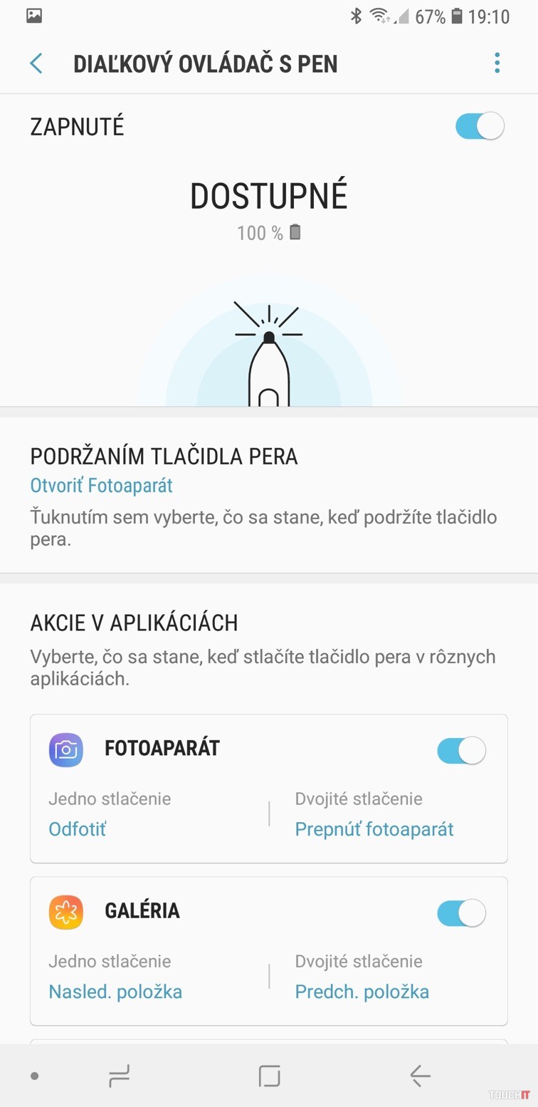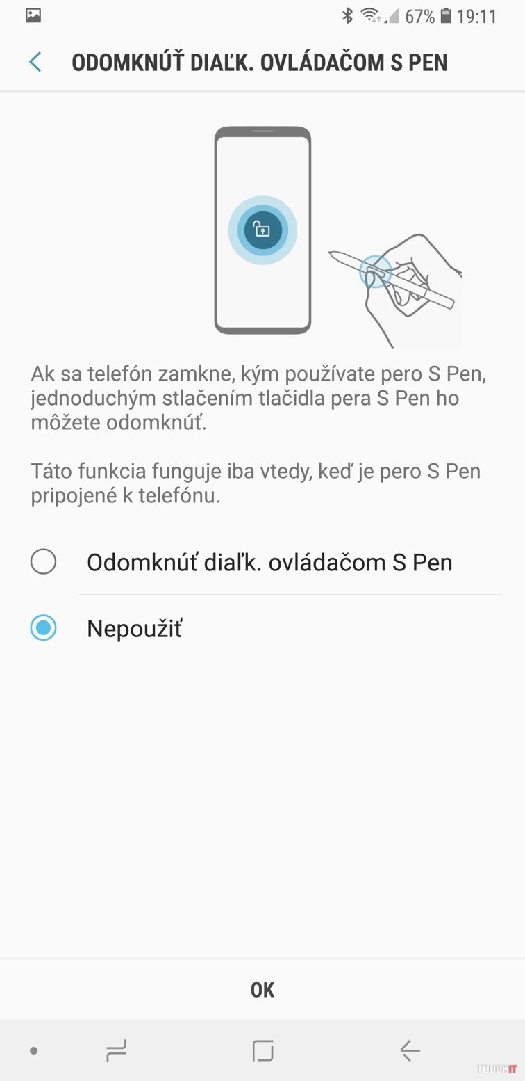 Integrovaná mini batéria sa vo vnútri pera nabíja veľmi rýchlo. 40 sekúnd stačí na 30 minút práce – to je dobrý pomer. S Pen sa dá využiť aj na odblokovanie telefónu. Ak ho máte vonku a telefón sa zamkne, stačí stlačiť tlačidlo a je odomknutý. Taktiež nechýbajú poznámky na zamknutej obrazovke, ktoré sú návykové. Všetky spomenuté funkcie je možné podrobnejšie nastaviť, ale aj úplne vypnúť.