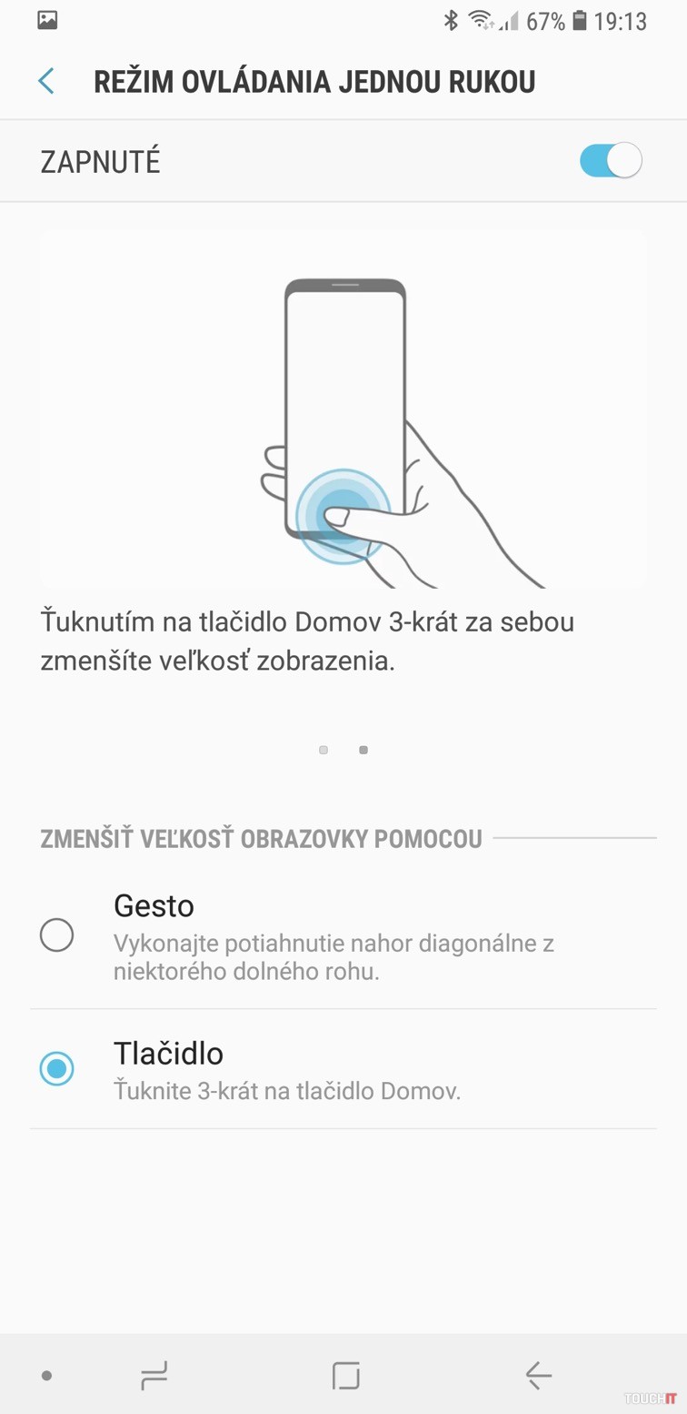 Ovládanie takto veľkého displeja (telefónu) jednou rukou nie je jednoduché, ale je to predsa Note a ten má byť veľký. Buď ho chytíte istým úchopom do oboch rúk alebo využijete možnosť ovládania jednou rukou. Obrazovku je možné zmenšiť gestom alebo trojitým poklepaním na domovskú ikonu.