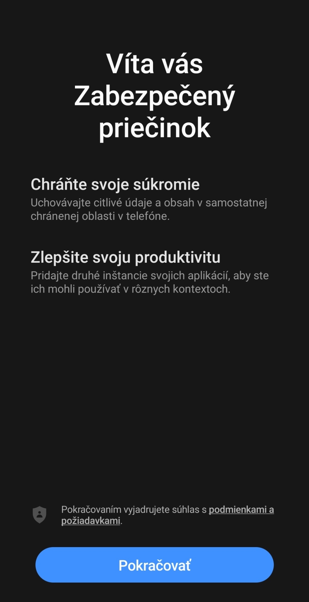 Vyhľadáte si aplikáciu Zabezpečený priečinok. Aplikácia vás privíta a vysvetlí, že slúži na uchovávanie citlivých údajov v samostatnej oblasti telefónu. Využiť ju môžete aj tak, že si sem pridáte druhé inštancie svojich aplikácií (napr. Facebook s iným kontom), aby ste ich mohli používať v rôznych kontextoch.