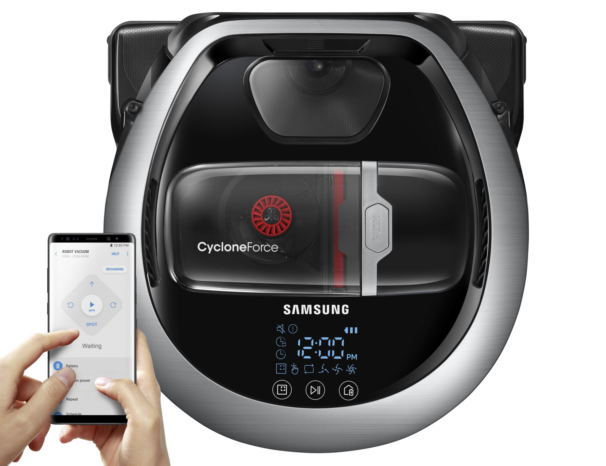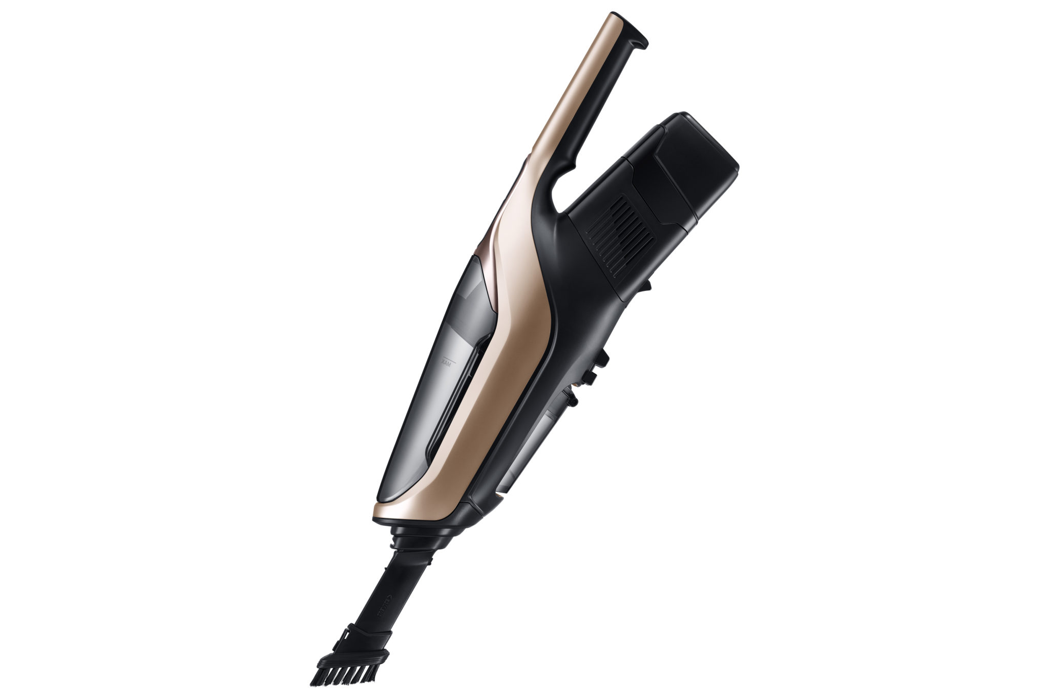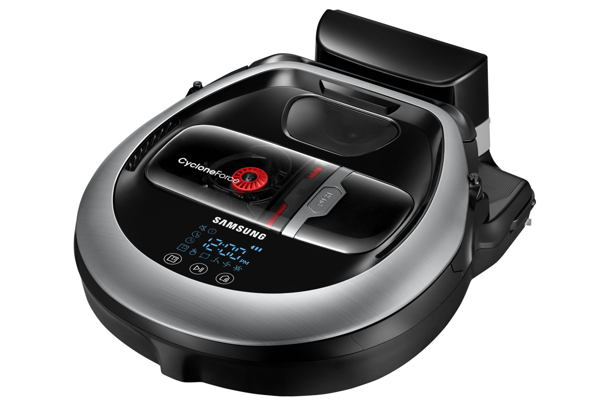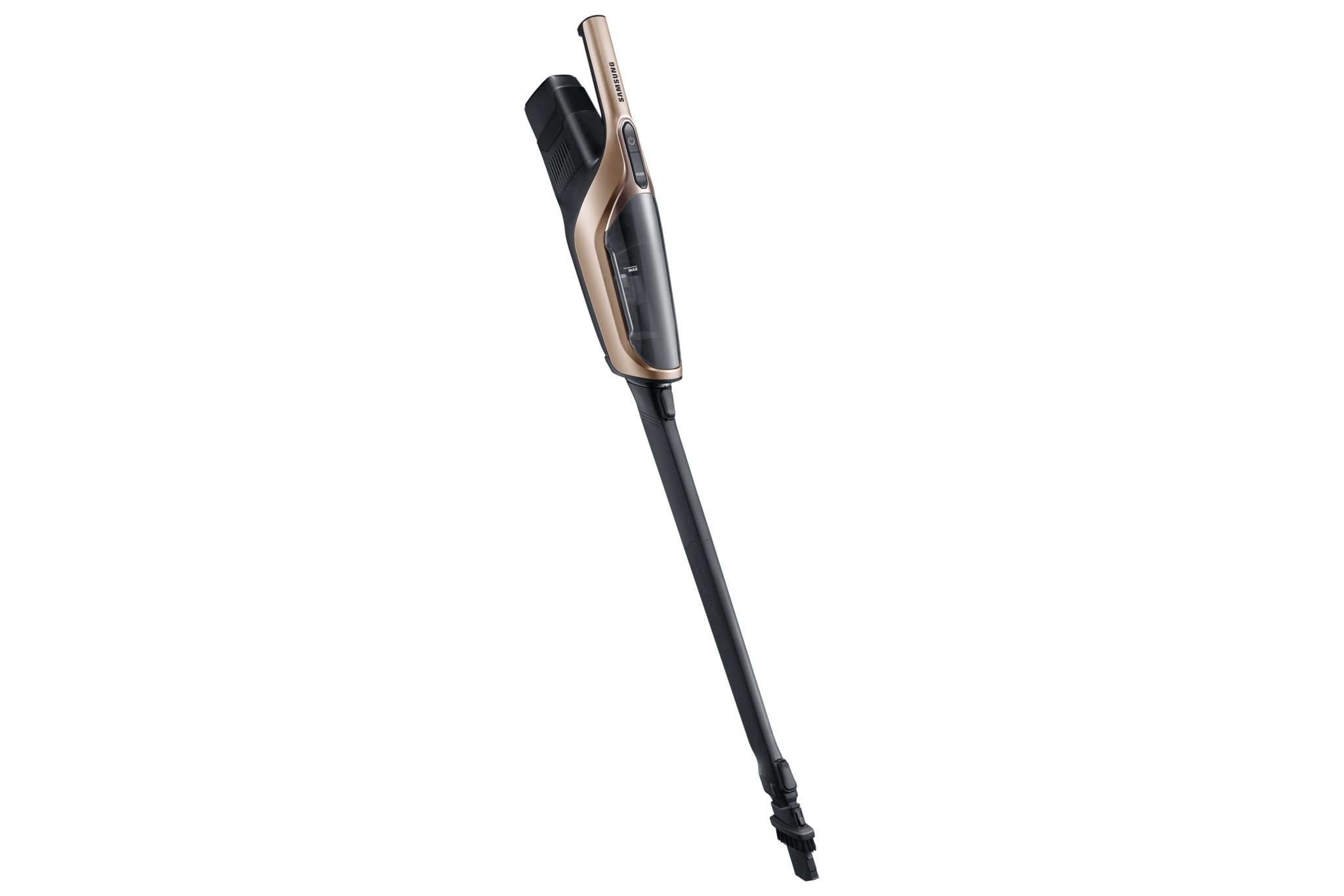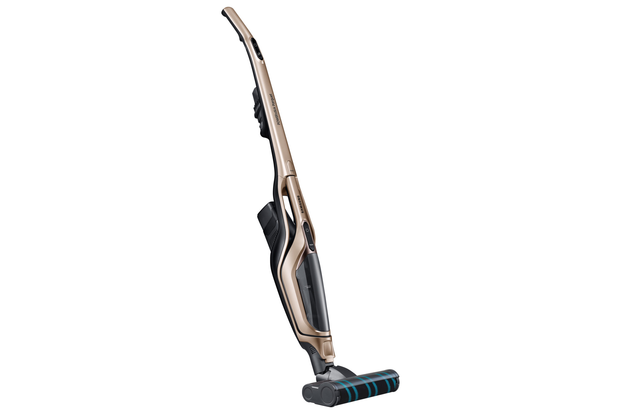 Poverám a mýtom, že robotické vysávače nevysávajú a len zametajú, je od modelového radu Samsung PowerBot koniec. Nový model od Samsungu totiž nepoužíva bežné metličky. Na upratovanie využíva silný 130 W motor, ktorý prach a špinu spoľahlivo vysaje. V spojitosti s technológiou Edge clean vyčistí rohy a hrany miestnosti pomocou výsuvnej lišty. Technológia Intelligent Power Control automaticky prispôsobuje sací výkon podľa vysávaného povrchu. Bezvrecková filtračná technológia Cyclone Force udržiava stály sací výkon vysávača. Navyše je doplnený o umývateľný penový filter s mikrofiltrom. Motor je napájaný z 21,6 V Li-Ion batérie s kapacitou 3600 mAh. Nový rad Samsung PowerBot VR7200 bol doplnený o špeciálnu rotačnú semišovú antistatickú kefu. Tá obsahuje strieborné vlákna Soft Roller Wide Brush, ktoré svojou rotáciou staticky elektrizujú drobné častice prachu a tým je vysávanie efektívnejšie a zároveň šetrné k podlahám. Kefa obsahuje špeciálny systém čistenia namotaných vlasov, ktorý ich sám vo výraznom množstve odstráni. Šírka čistiacej kefy je až 278 mm, čím je vysávanie domácnosti veľmi rýchle. Novinka je okrem toho vybavená aj senzormi proti pádu, vizuálnym navigačným systémom Visionary Mapping Plus, FullView Sensor 2.0, ktorý vo veľkej miere úplne zamedzuje nárazom do okolia a najnovšie bol doplnený nový optický senzor na rýchlejšiu a vylepšenú navigáciu a pohyb v priestore. Upratovanie je možné aj pomocou diaľkového ovládania Point Cleaning, s ktorým stačí ukázať na miesto, ktoré chcete vyčistiť, a vysávač k nemu sám príde bez potreby prenášania. Jeho ovládanie je však možné aj prostredníctvom Wi-Fi s plne autonómnym nastavením cez aplikáciu Samsung SmartThings. Priestor, ktorý má vysávač poupratovať, je možné vymedziť aj magnetickou páskou.Tyčový pomocník 2 v 1