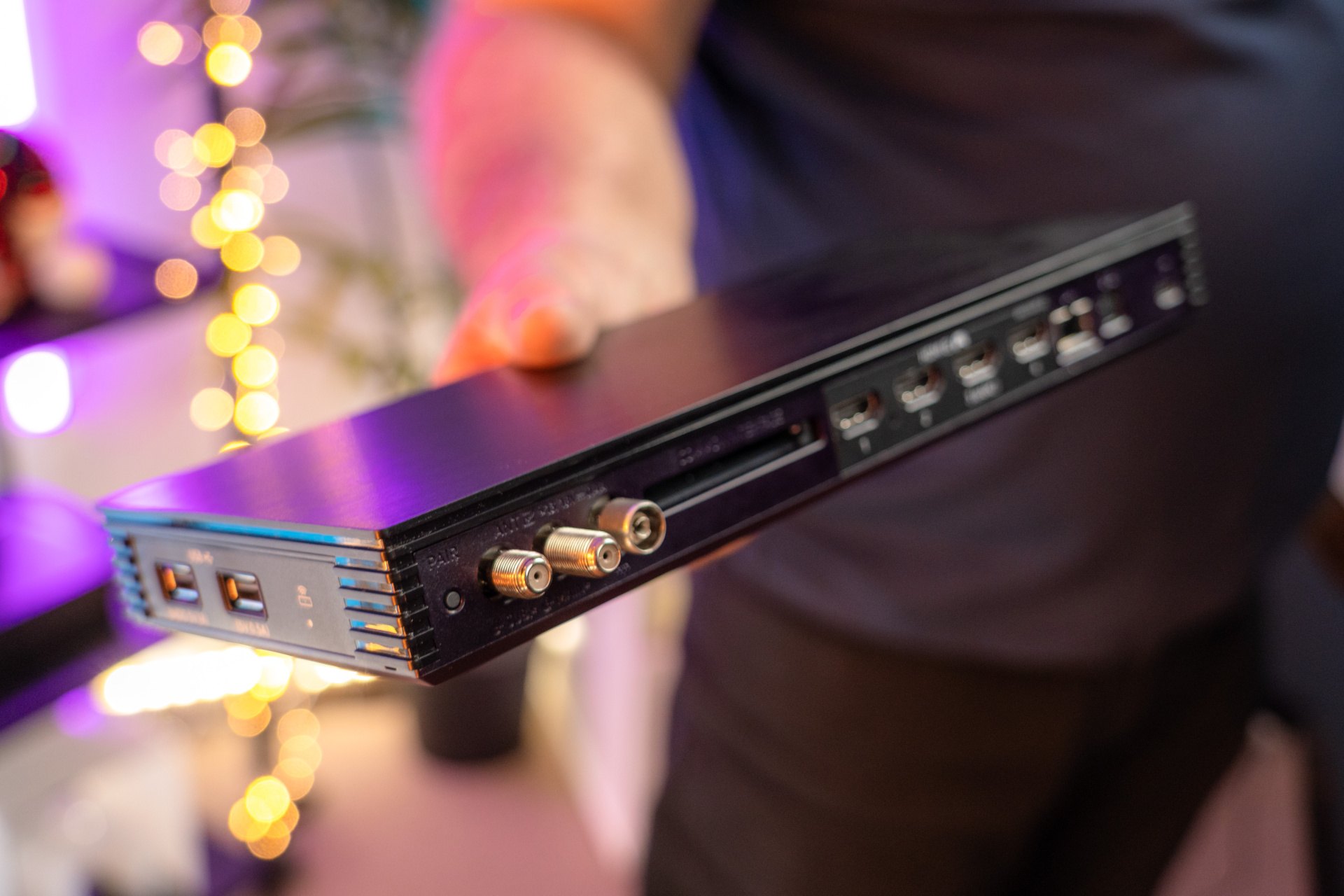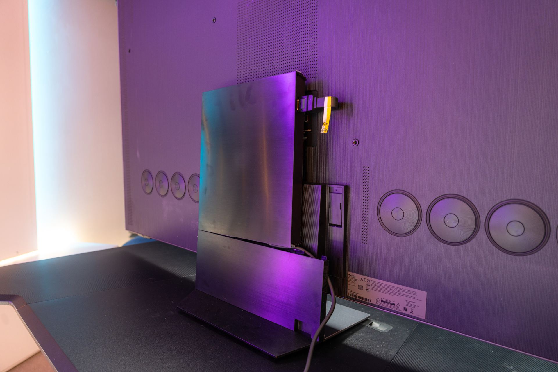 Kombinácia Infinity Air Designu a bezdrôtového One Connect Boxu vytvára čistý vizuálny dojem. Jediný kábel vedie do elektrickej siete, všetky ostatné pripojenia sú riešené bezdrôtovo. Na bezdrôtovom One Connect Boxe nájdete celkovo 5 portov HDMI, 2 porty USB, optický výstup zvuku, je tu aj Ethernet port, šachta pre dekódovaciu CI kartu a pripojenie antény satelitného a terestriálneho vysielania. Box zaisťuje aj Wi-Fi 6E a Bluetooth pripojenie.