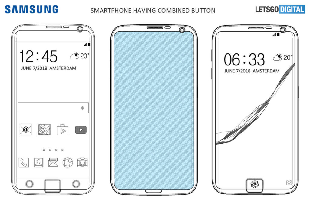 Zmien sa dočkal aj dizajn smartfónu. Je znázornená prepracovaná predná stena pre dosiahnutie ešte vyššieho pomeru displeja k telu zariadenia. Očakáva sa hodnota na úrovni minimálne 90 %.Samsung podal patent na WIPO 29. novembra 2017. Dokumentácia k tejto žiadosti bola zverejnená včera 7. júna. Spoločnosť podľa dokumentov pracuje na kombinovanom domovskom tlačidle. Patent bol pritom prvýkrát podaný už koncom roka 2016 v domovskej Južnej Kórei.Je všeobecne známe, že Samsung má problémy s vývojom snímača odtlačkov prstov, ktorý by mal byť zabudovaný v displeji. Pripravovaný model Galaxy Note 9 by mal už tento inovatívny snímač obsahovať, pričom spoločnosť stále nie je spokojná s jeho momentálnym fungovaním.