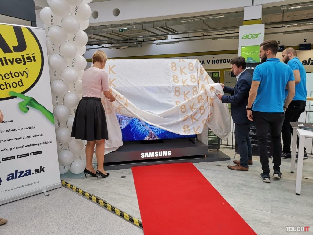 Samsung dnešným dňom oficiálne spustil predaj 8K QLED televízorov na Slovensku. Alza.sk pri tejto príležitosti pripravila špeciálnu prezentáciu, televízor bol v predstihu vystavený aj v NAY. Novinku si tiež môžete kúpiť v Datarte a značkových predajniach Samsungu. Televízory budú dostupné od 22. októbra, odporúčaná maloobchodná cena modelu Q900R bude 4 999 eur za veľkosť 65 palcov, resp. 6 999 eur za 75-palcovú verziu a 14 999 eur za televízor s uhlopriečkou 85 palcov. Na Slovensku by mali byť k dispozícii desiatky kusov. 8K QLED televízor s rozlíšením 7680 × 4320 pixelov prináša štyrikrát viac pixelov ako 4K televízory a šestnásťkrát viac pixelov ako Full HD televízory. Pre reprodukciu obrazu v kvalite 8K využíva Samsung Q900R nový procesor Quantum Processor 8K s využitím umelej inteligencie. V prvom kroku analyzuje zdrojový obsah a pre následný prepočet do 8K rozlíšenia ho porovnáva s dynamickou knižnicou vzorov, tvarov a farieb. Následne použije algoritmus, ktorý najlepšie zodpovedá danému obsahu a prevedie finálnu reprodukciu obrazu do plného rozlíšenia 8K. Tento postup aplikuje pre akýkoľvek obsah bez ohľadu na jeho zdroj. Q900R tiež ponúka priame zadné podsvietenie Direct Full Array Elite pre zvýšenie kontrastu a dokonalej čiernej farby. Chváli sa aj dynamickým jasom HDR10+ na úrovni 4000 nitov.8K QLED televízor od Samsungu počas spustenia predaja v Alza.sk. Na poslednej fotke je zobrazený prepočet Full HD obsahu