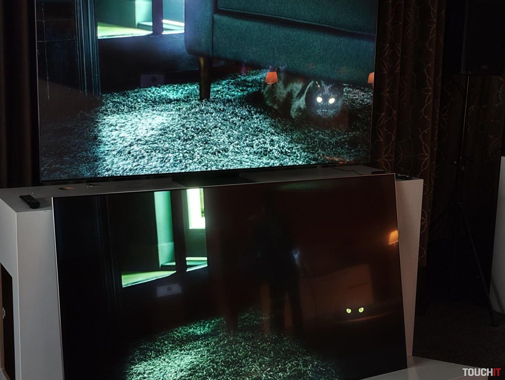 To, čo vidíte, je zapnutý TV bez obrazu, keď ale zapnete prehrávanie filmu, dá sa hovoriť o nulovej odrazivosti. Správna pripomienka by bola, že rovnako tak sa zníži viditeľnosť odrazu aj na paneli z minulého roka. Áno, avšak na farby to bude mať dopad a budú viac svetlé či sivé.