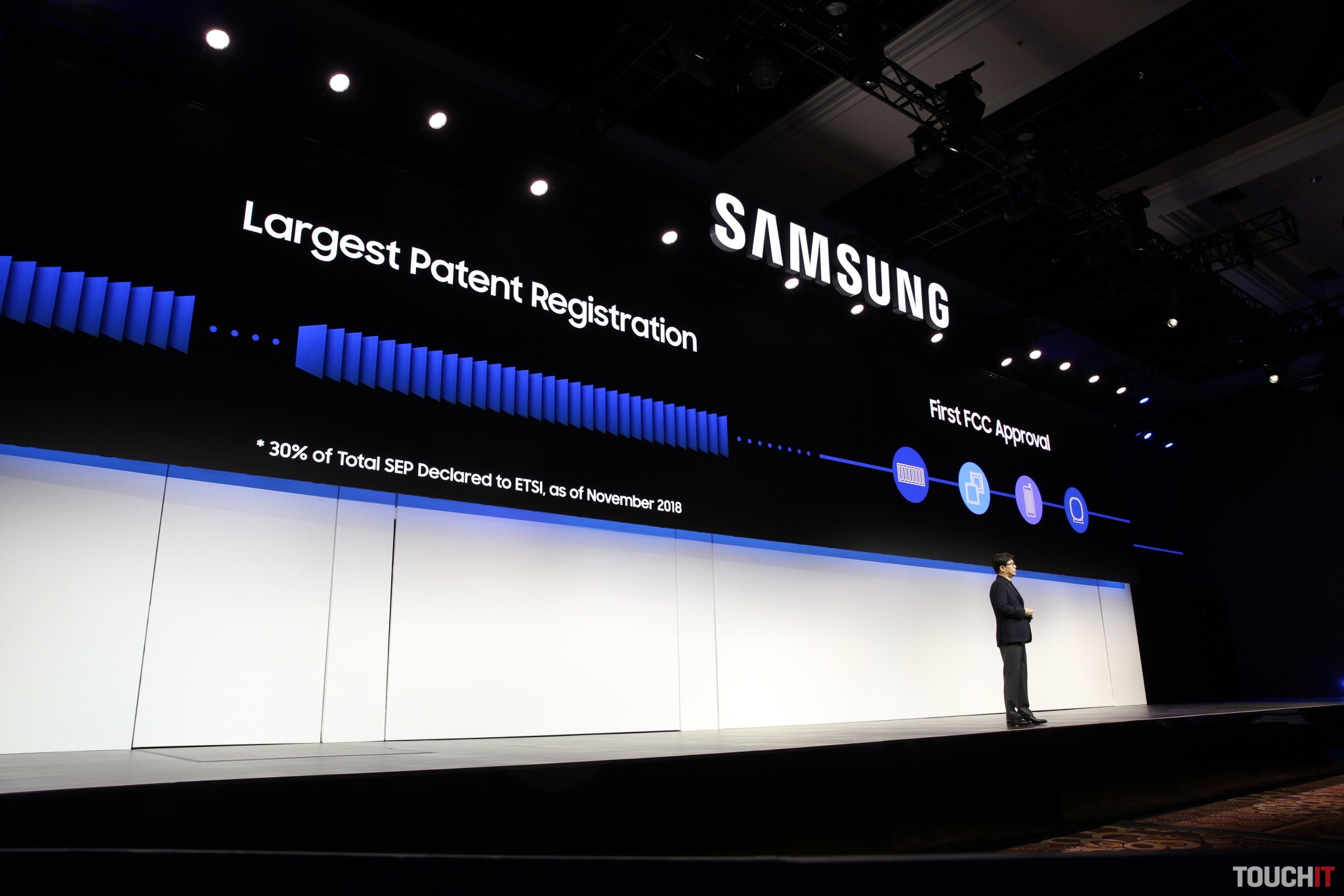 Spoločnosť Samsung využila svoje vedúce postavenie v oblasti telekomunikácií na to, aby urobila zásadné kroky smerujúce k poskytnutiu konektivity 5G zákazníkom. Samsung je držiteľom najväčšieho počtu patentov v ETSI. Od novembra 2018 spoločnosť zaregistrovala viac než 2 000 zásadných patentov pre siete 5G.