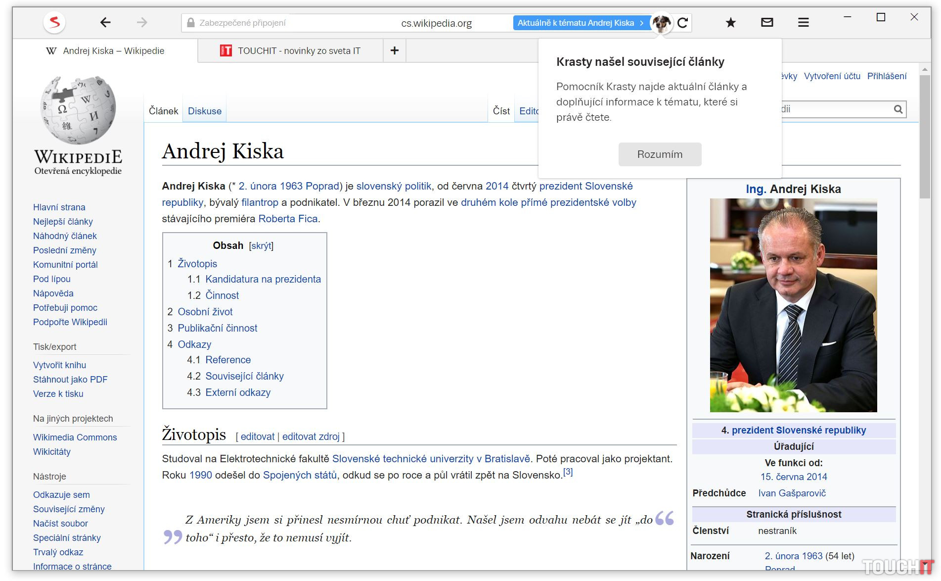 Krasty tiež dohľadá relevantné články k tomu, čo si ľudia na internete čítajú a ponúka napríklad aktuálne články k najrôznejším heslám na Wikipedii. Automaticky tiež nájde otváracie hodiny, adresy a ďalšie praktické informácie na stránkach úradov či reštaurácií. K umelcom, politikom, hudobným skupinám a divadlám vie priradiť ich aktuálny program, či všetko, čo sa o nich v poslednom čase písalo. Krasty oddnes upozorní aj na súvisiace články na troch najväčších slovenských spravodajských portáloch, a to sme.sk, dennikn.sk a pravda.sk. K novým funkciám prehliadača patrí aj upozornenie v prípade mimoriadnych udalostí. Pokiaľ sa doma či vo svete stane niečo závažného, prehliadač formou notifikácie upozorní a ponúkne odkaz na spravodajské weby Seznam Zprávy alebo Novinky.cz. Opäť platí, že Krasty funguje iba v rámci vyhľadávača Seznam.cz. Prehliadač umožňuje zmenu nastavenia predvoleného vyhľadávača aj na konkurenčný Google či Bing. Nová verzia, ktorá obsahuje všetky spomínané novinky, je k dispozícii pre macOS, Windows, Android a iOS. Verzia pre Windows 10 Mobile je v režime údržby, je tak stále dostupná, avšak Seznam neplánuje do nej prinášať nové funkcie okrem nevyhnutných opráv.Podobné články