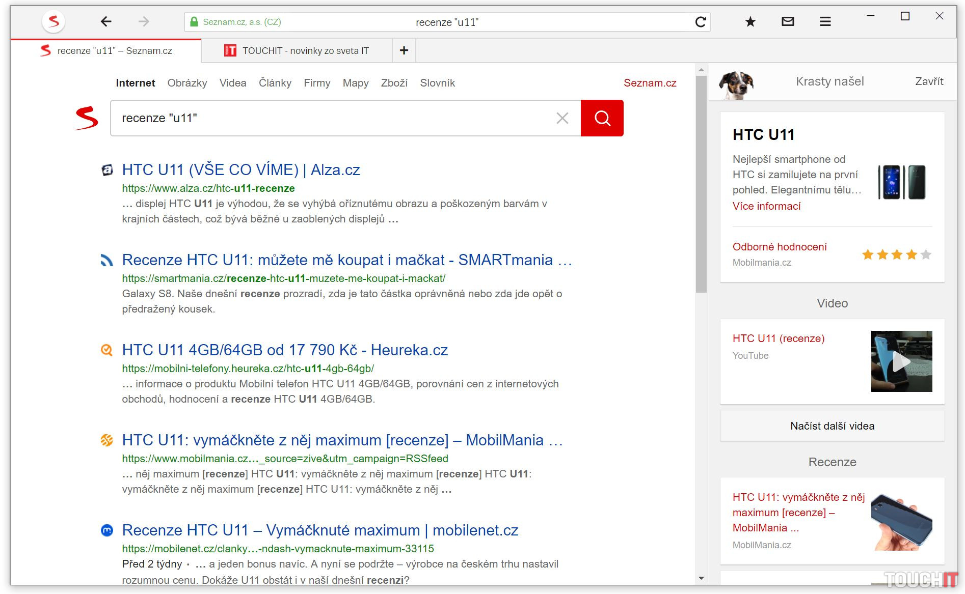Prehliadač postupne za posledné obdobie získal rad nových funkcií, ktoré sú v novej verzii plne k dispozícii na desktope a v mobile. Centrom všetkého je červené esko, ktoré symbolizuje návrat na domovskú stránku Seznam.cz. Pes Krasty je pomocníkom, ktorý symbolizuje jednoduchosť, s akou sa v danú chvíľu v prehliadači zobrazia sprievodné a užitočné informácie, a to skôr, než ich začne používateľ sám aktívne hľadať. Jeho vykúkajúca hlava znamená, že prináša nejaké upozornenie alebo ponuku. Pokiaľ je používateľ na cudzojazyčnom webe, automaticky to pozná a dá mu možnosť stránku preložiť. To isté po novom spraví s emailom v cudzom jazyku. Konkrétne vie prekladať z angličtiny a nemčiny, v príprave je ruština a ďalšie jazyky budú nasledovať. Krasty pomôže aj pri nákupoch. Keď si v e-shope prezeráte výrobok a na internete existujú články s recenziami, Krasty vás na ne upozorní. A pokiaľ si prezeráte recenziu v podobe článku alebo videa, Krasty ponúkne porovnanie cien daného produktu. V praxi to funguje dobre, avšak táto funkcia je aktuálne prispôsobená hlavne pre českých používateľov. Slovákom aktuálne príliš nepomôže, najmä pri nakupovaní nie. Krasty funguje iba v rámci vyhľadávača Seznam.cz, avšak v rámci prehliadača si môžete nastaviť ako predvolený vyhľadávač aj konkurenčný Google či Bing.V zozname recenzií sú na prvom mieste české portály, neskôr sa objaví aj nejaký slovenský. S nákupom však pes Slovákom neporadí