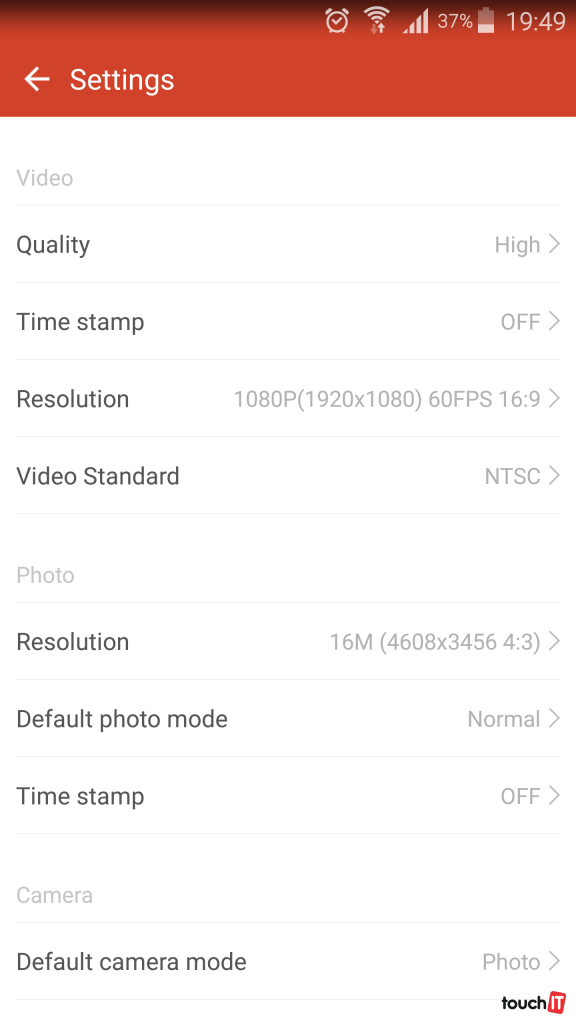 Niekoľko z nich je napr. – rozlíšenie, snímkovanie (fps), zaostrovanie, automatický režim pri slabom osvetlení, rotácia snímaného obrazu dolu hlavou, núdzová záloha, hlasitosť reproduktoru, vypnutie informačných diód, čas a dátum (možnosť zobrazenia aj v záznamoch), automatické vypnutie po vami určenom čase nečinnosti kamery, dostupné miesto na úložisku a vyhľadanie kamery pomocou zvukového signálu z kamery.