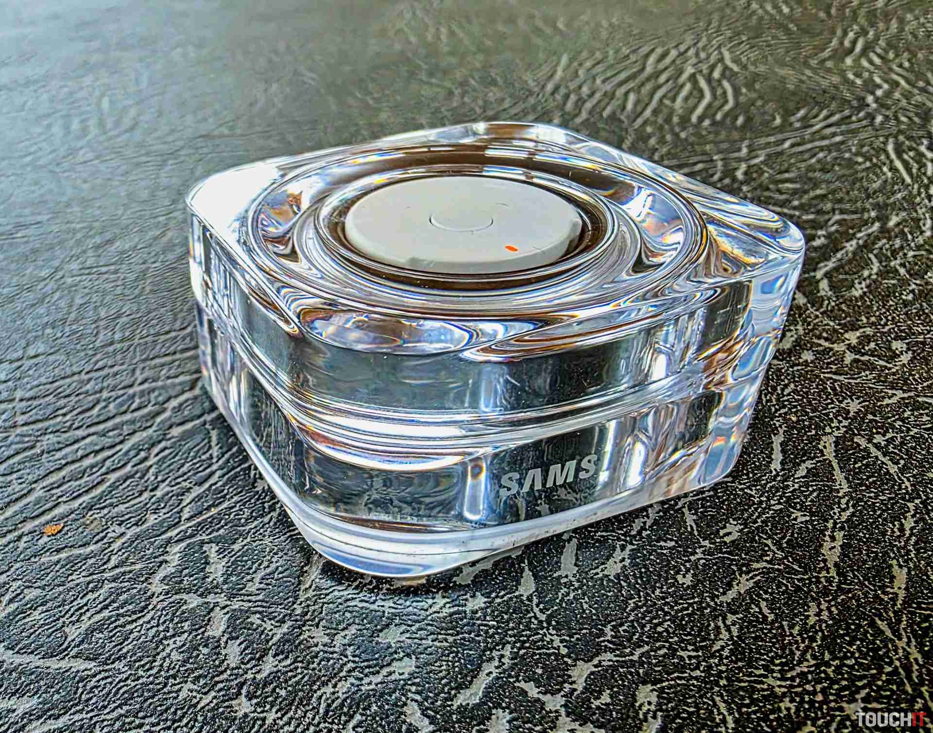 O nabíjanie sa stará priesvitná plastová krabička, ktorá je zároveň adaptérom na nabíjanie a obsahuje aj vlastnú batériu na nabíjanie bez externého zdroja elektrickej energie.