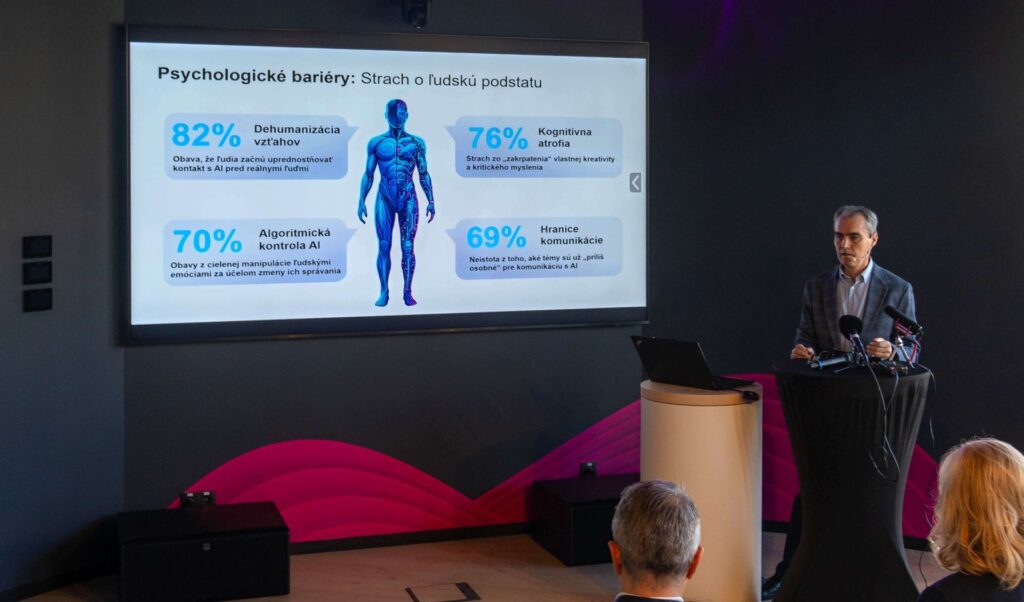 Výskum ukazuje, že AI nie je vnímaná len ako pomocník, ale aj ako potenciálne riziko. Najsilnejšie obavy sa týkajú dehumanizácie. Teda straty medziľudských vzťahov a presunu komunikácie smerom k strojom. Rovnako výrazný je strach z „kognitívnej atrofie“, teda oslabenia schopnosti kriticky myslieť a tvoriť.
