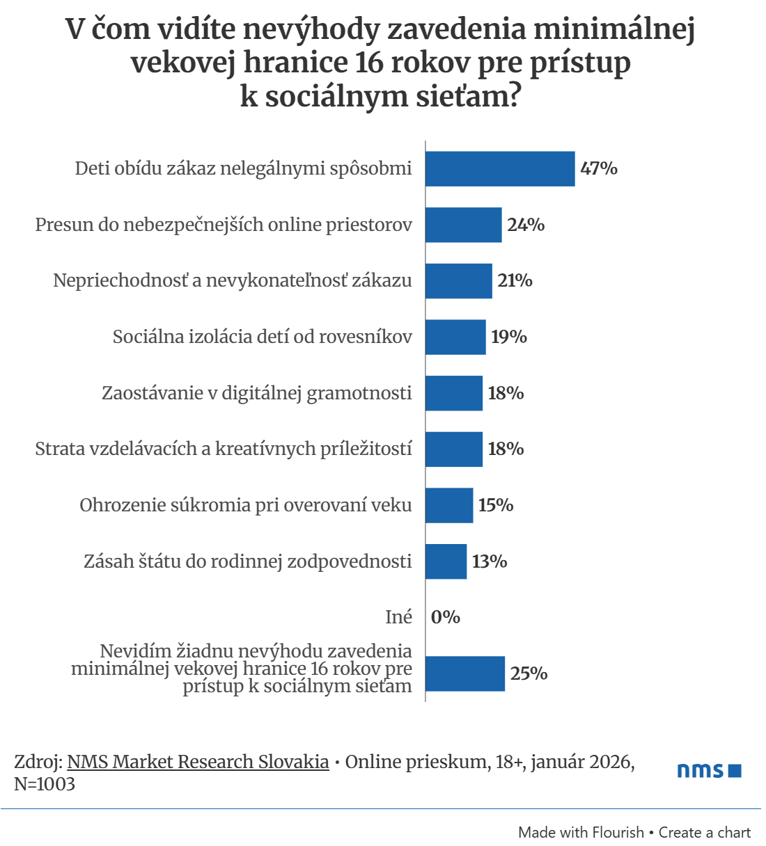 Najnovší prieskum agentúry NMS Market Research ukazuje, že zavedenie vekovej hranice 16 rokov má výraznú podporu verejnosti – súhlasí s ním až 81 % populácie. Téma rezonuje najmä v kontexte pripravovanej legislatívy o ochrane maloletých v digitálnom priestore a rastúcich obáv z vplyvu online prostredia na psychiku a správanie detí.
