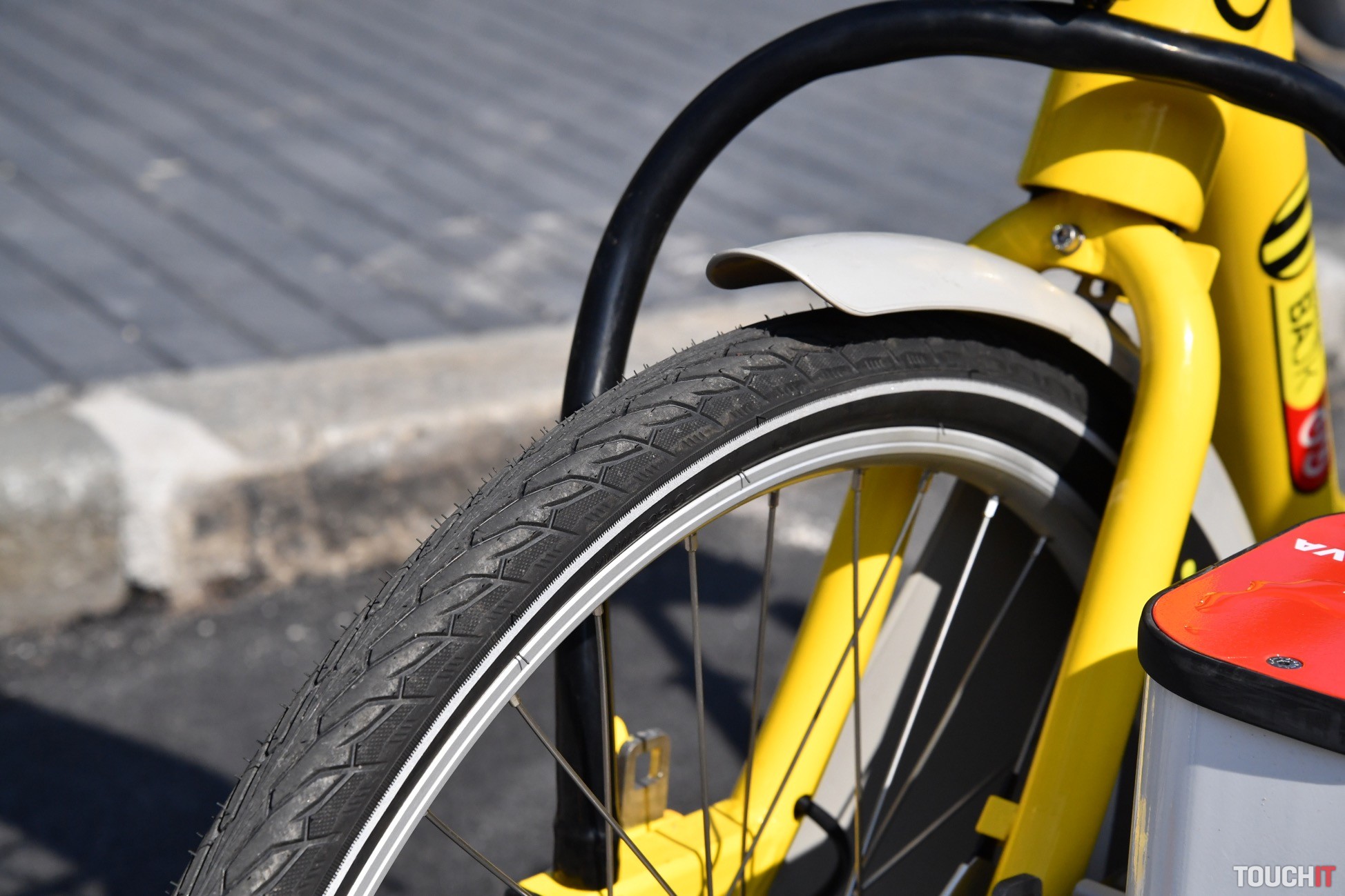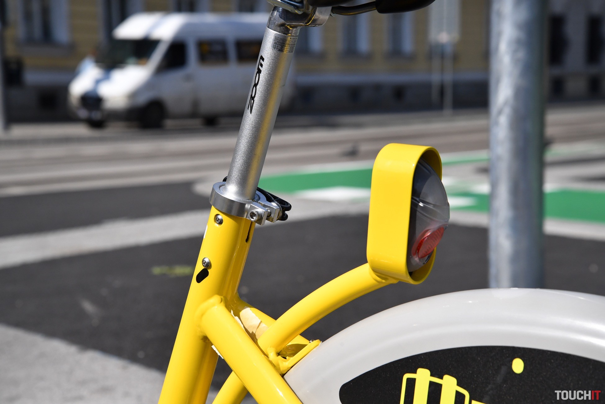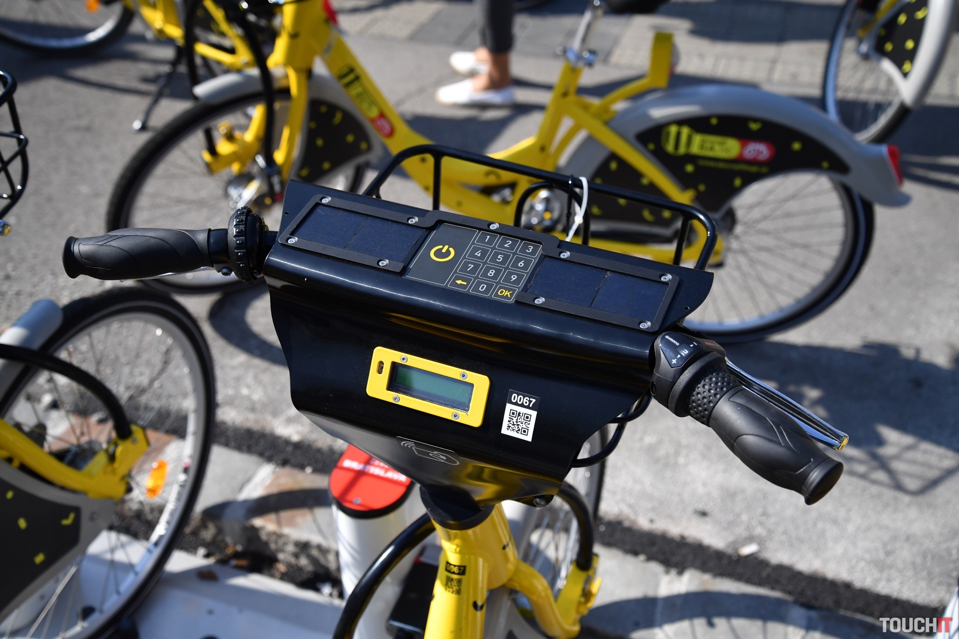 Bicykle z tejto služby spoznáte okamžite. Ide o žlté mestské bicykle s rámom v dámskom prevedení. Váha bicykla je 17 kg a nechýba mu ani systém prehadzovania rýchlostí. V tomto prípade sú to 3 rýchlosti, ale mohlo by ich byť viac – do kopca to nebude vždy jednoduché. V zásade je však jazda pohodová a príjemná. Brzdy sú bubnové, fungujú dobre, ale prijali by sme, keby boli o niečo intenzívnejšie. Samozrejmosťou je nastaviteľné sedadlo, zvonček, stojan a blatníky, aby sa predišlo znečisteniu oblečenia používateľa. Bicykle majú pohodlné kožené sedadlá a pred volantom košík na menšiu tašku. V prednej časti sa nachádza aj celý systém ovládania. Ten je založený na malom displeji a numerickej klávesnici s aktivačným tlačidlom. Ak si chcete bicykel vziať, aktivujete systém tlačidlom „power“, zadáte váš 8 ciferný kód a potvrdíte tlačidlom – OK. Následne odpojíte zámok, vytiahnete bicykel, zámok zapojíte bezpečne do rámu bicykla a môžete vyraziť. Bicykel si môžete prevziať na jednej stanici a vrátiť na akejkoľvek inej.