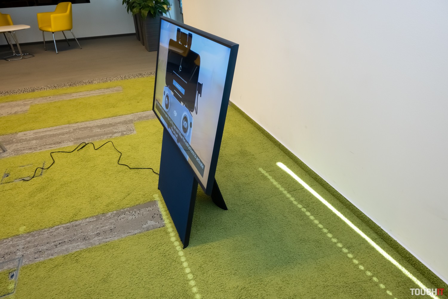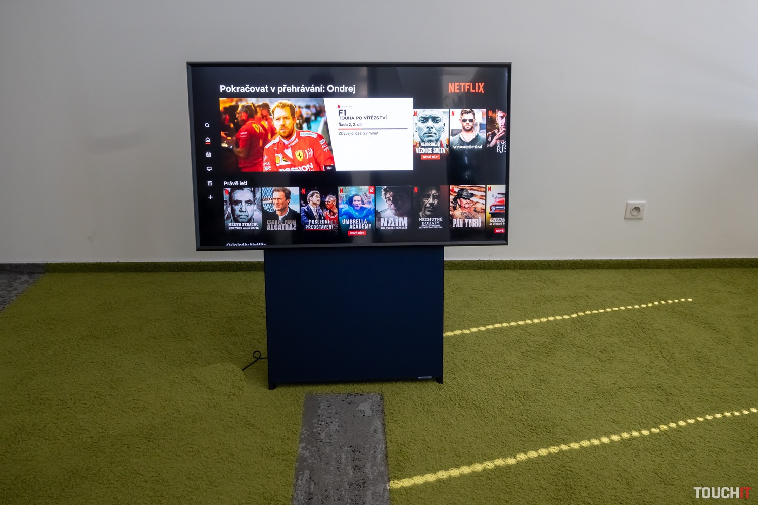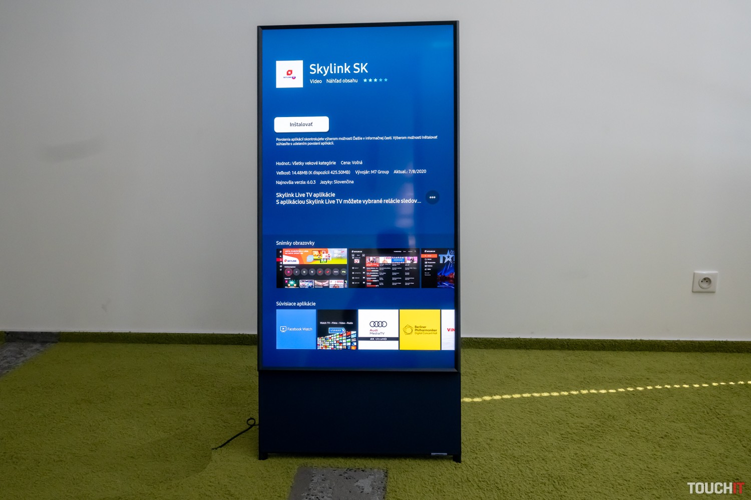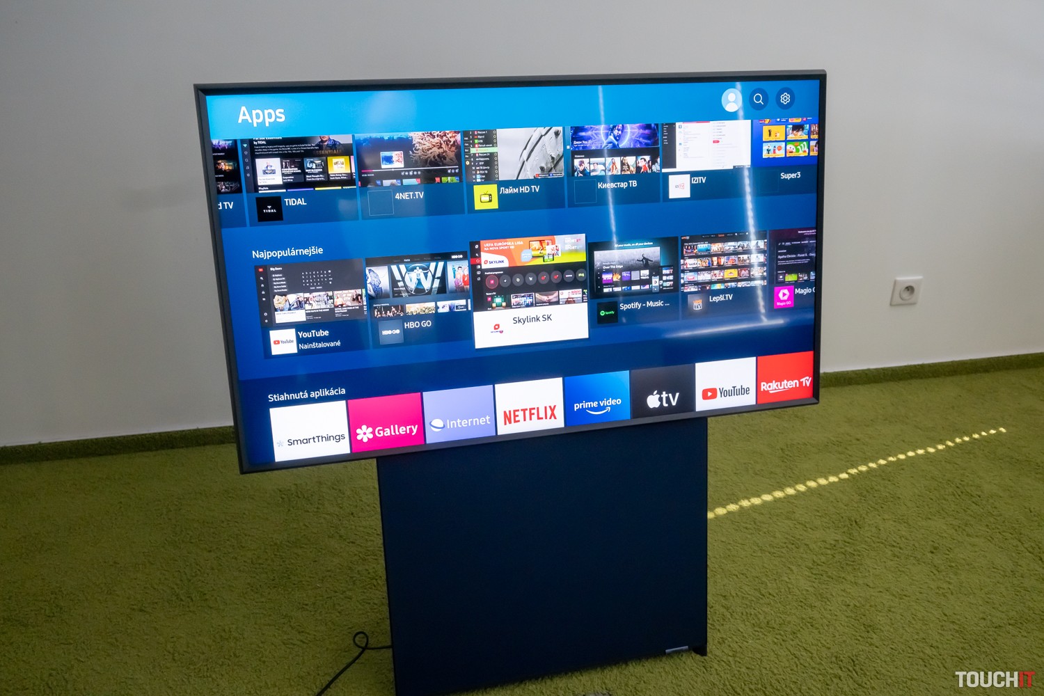 Jeho základnou charakteristikou je práve otočná obrazovka. Tento televízor nepotrebuje osobitný stojan, pri montáži sa prichytáva len oporná noha. Ak chcete, televízor je možné jednoduchšie premiestňovať po miestnosti pomocou zabudovaných koliesok. Tie sa dokupujú osobitne. Testovali sme model s označením Samsung QE43LS05T, ktorý má uhlopriečku 43 palcov, čo je 109 cm.