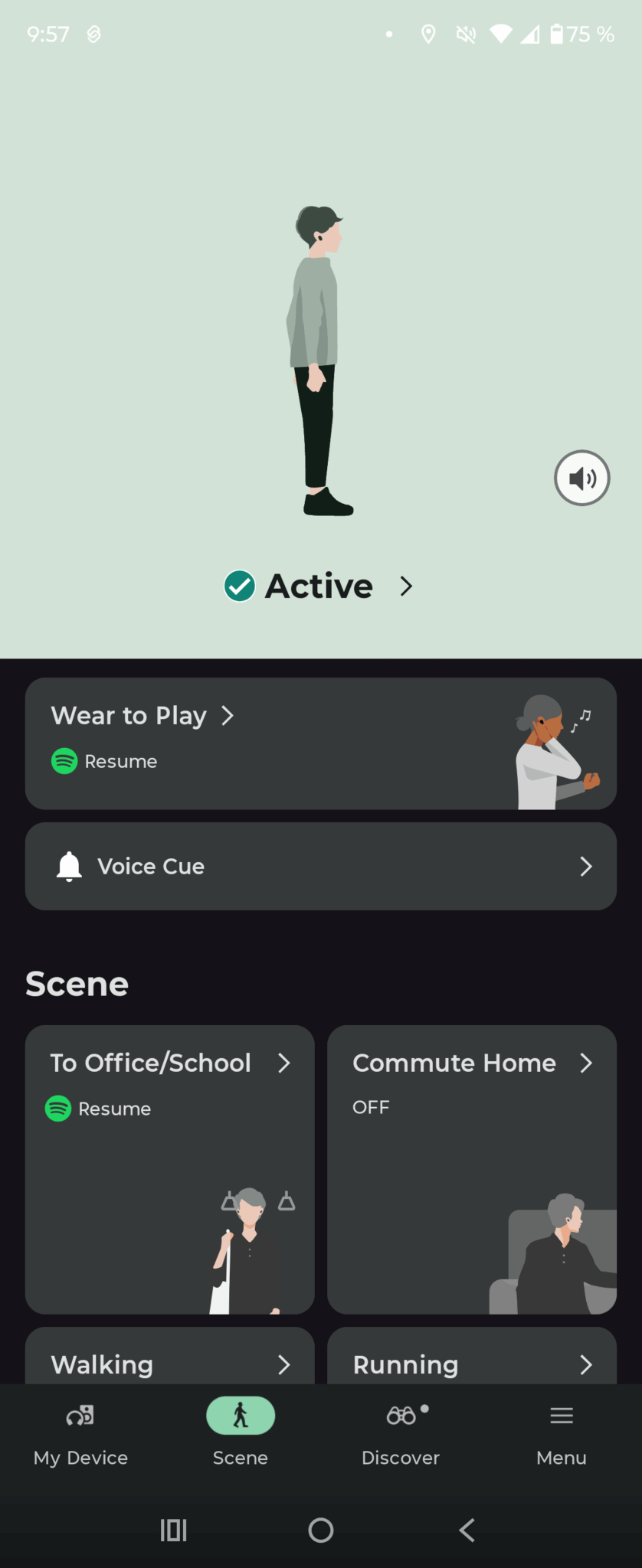 Samostatnou časťou aplikácie sú Scény. Tie umožňujú meniť režimy slúchadiel a prehrávať či pozastaviť hudbu zo Spotify alebo inej podporovanej aplikácie na základe vašej lokality.