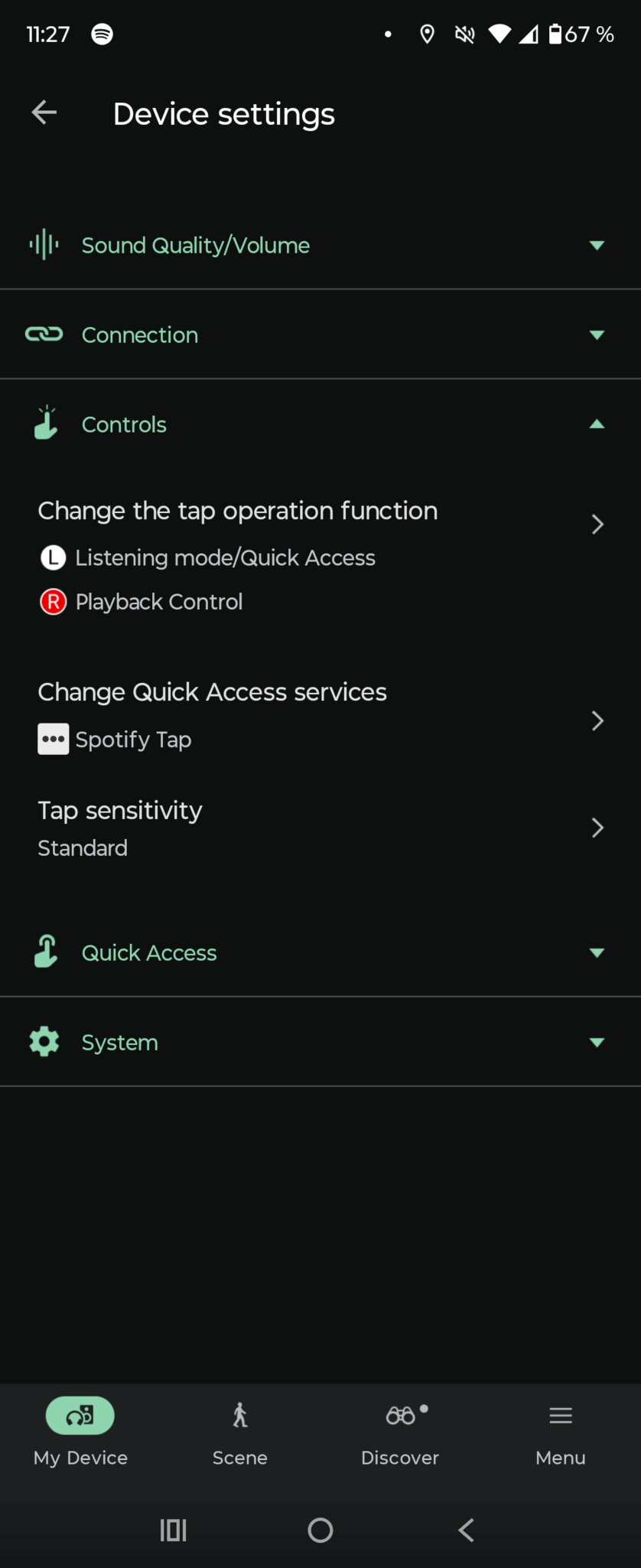 Ovládanie si môžete prispôsobiť pre ľavé a práve slúchadlo samostatne. Na rozdiel od iných slúchadiel tejto značky či konkurencie tu nie je úplne detailné nastavenie konkrétnej funkcie podľa počtu ťuknutí. Vždy si vyberáte okruh toho, čo bude slúchadlo vykonávať. Aplikácia potom zobrazí nastavenia pre dvojité alebo trojité ťuknutie na dotykovú plochu.