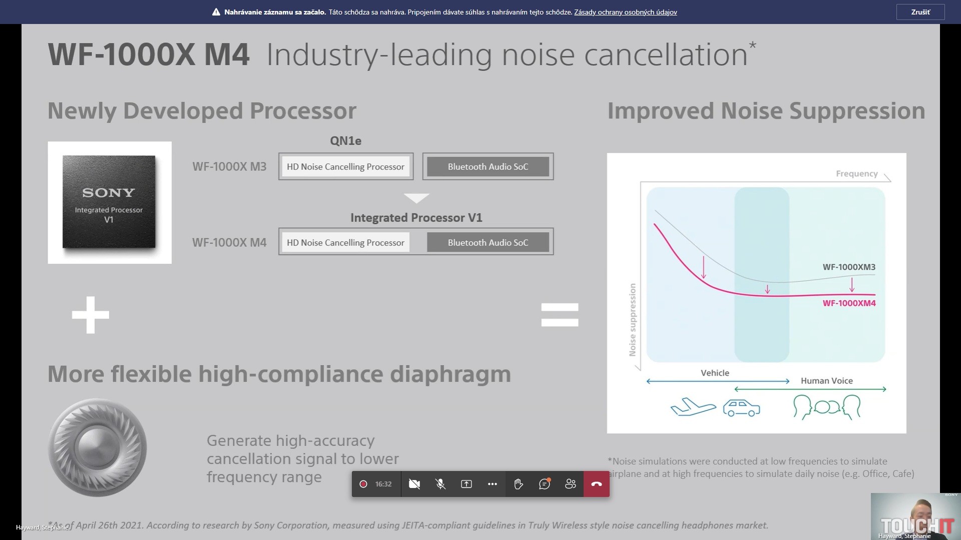 Tým, že firma vynechala pomyselný model M2, je číslovanie voči generáciám posunuté. Slúchadlá zmenili tvar a sú viditeľne menšie a zmenšený objem má aj nabíjacia škatuľka, až o 40 % . Tá bola teda naozaj veľká a patrila medzi najväčšie na trhu, už na prvý pohľad. V nadväznosti na rozmery výrobca zlepšil výdrž batérie. To poteší, najmä ak máte menšie slúchadlá aj nabíjačku oproti minulej generácii. Výsledkom je teda predĺženie výdrže na jedno nabitie o 2 hodiny na 8 hodín so zapnutým ANC a 12 s vypnutým. S nabíjacou kolískou získate celkom 24. Zmenou prešiel hlavný systém a tým je procesor. Pôvodný QN1e nahradil integrovaný procesor V1. Výsledok je lepšie spracovanie okolitých rušení a vylepšená podpora spracovania audio signálu. Oba komponenty, teda HD Noise Cancelling Processor a Bluetooth Audio SoC, sú v jednom čipe. Je tu podpora technológie LDAC, ktorá prenáša 3× viac dát ako štandardný audio režim Bluetooth. Vylepšenie na úrovni ANC je aj vďaka novo navrhnutej 6 mm jednotke s o 20 % väčším magnetom. ANC funguje aj na potlačenie hluku z vetra. Vylepšené boli aj náušníky, ktoré majú upravené zloženie s dôrazom na lepšie reprodukovanie cez zvukový kanál a izoláciu. Podobne ako veľké slúchadlá Sony WH1000XM4, majú aj tieto integrovanú funkciu Speak-to-Chat. Stačí začať hovoriť a mikrofóny budú sprostredkovávať vonkajší zvuk a prehrávanie hudby sa pozastaví. Dotykové ovládanie sa dá nastaviť cez aplikáciu, podobne ako ekvalizér, typ ANC alebo prispôsobenie na uši. Aplikácia na základe frekvenčných vĺn zmeria, ako sa šíri zvuk vo vašom tvare ucha a tomu upraví spôsob reprodukcie. Sú odolné voči náhodnému postriekaniu, potu aj dažďu a dostupné od tohto mesiaca za odporúčanú cenu 280 eur. Zdroj: Sony Prečítajte si aj:Duel Sony vs. Panasonic: Skutočne bezdrôtové slúchadlá