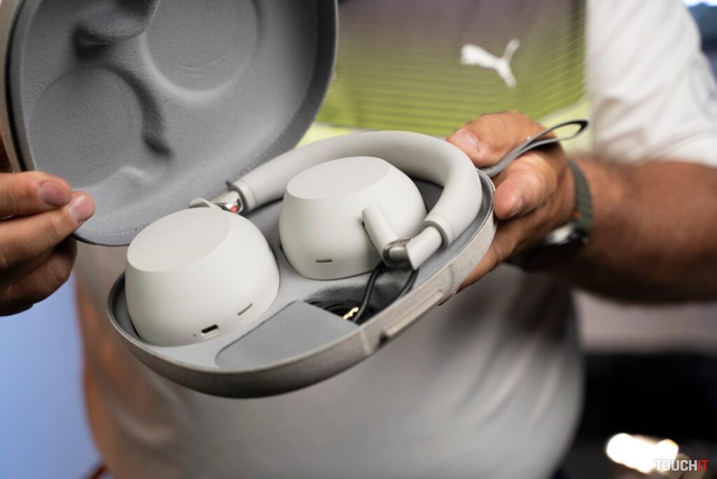 Skladací mechanizmus WH-1000XM6 je vyrobený pomocou sofistikovanej technológie vstrekovania kovu. Treba si na to zvyknúť, avšak po chvíľke zistíte, ako je to myslené a ide o veľmi spoľahlivý spôsob skladania. Zároveň je navrhnutý tak, aby sa dobre zmestil do tašky či vrecka v lietadle. Kompaktné puzdro je vybavené magnetickým uzáverom.