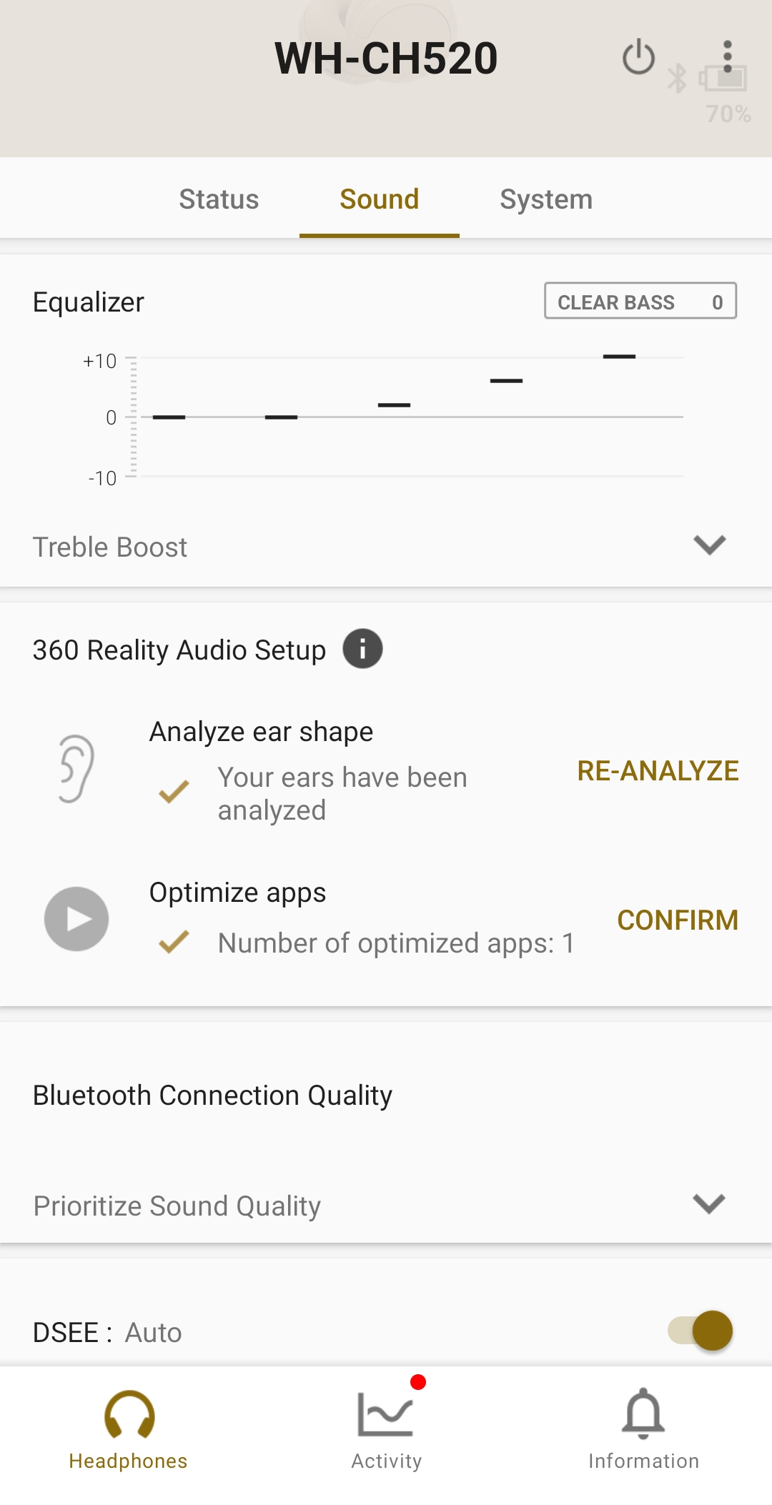 Ak to myslíte s kvalitou hudby naozaj, potom si necháte v aplikácii Sony Headphones analyzovať uši a optimalizovať aplikáciu, z ktorej prehrávate hudbu. Trvá to povedzme minútu, pritom si pomocou aplikácie odfotíte tvar uší a aplikácia zabezpečí analýzu. Konštatujeme, že to naozaj mierne vylepší podanie hudby.