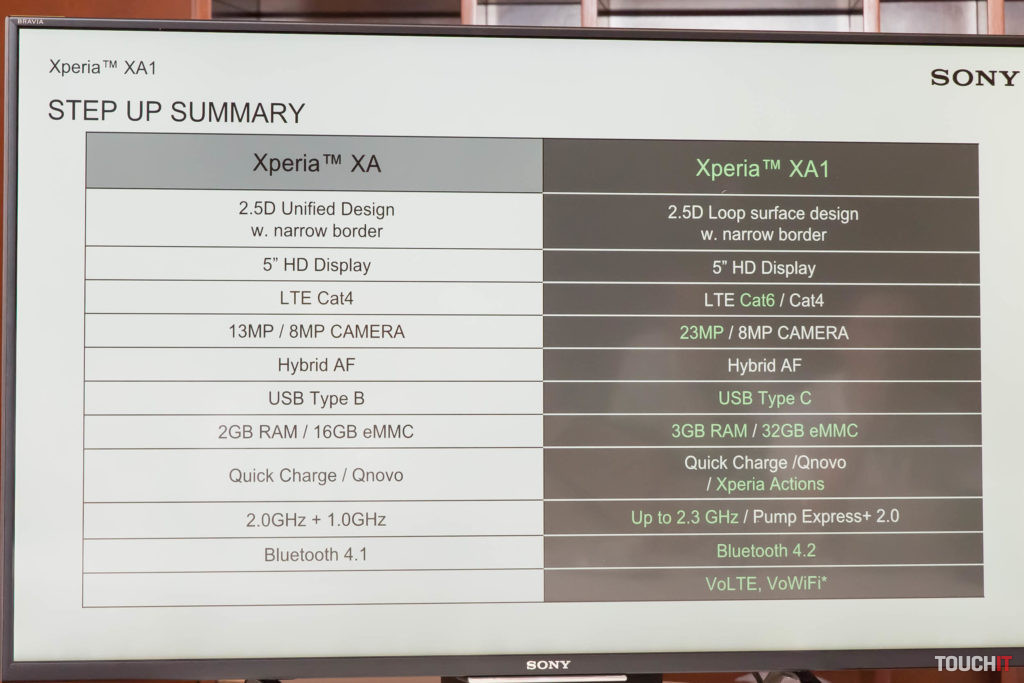 Vo výsledku je to telefón, ktorý sa dá dobre používať a má pre väčšinu používateľov správne rozmery. Výhodou sú práve úzke rámčeky okolo displeja. Nám sa na dizajne páčili hlavne zrezané hrany, pričom vyhotovenie telefónu je kovové. Použitým procesorom je Media Tek Helio s vyšším výkonom ako to bolo v prípade Sony Xperia XA a je tu viac pamäte RAM. Telefón má podporu Cat6, ale aj VoLTE a VoWIFI. Kapacita batéria je rovnaká ako XA1, teda 2300 mAh.