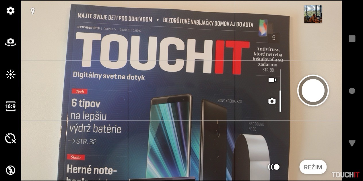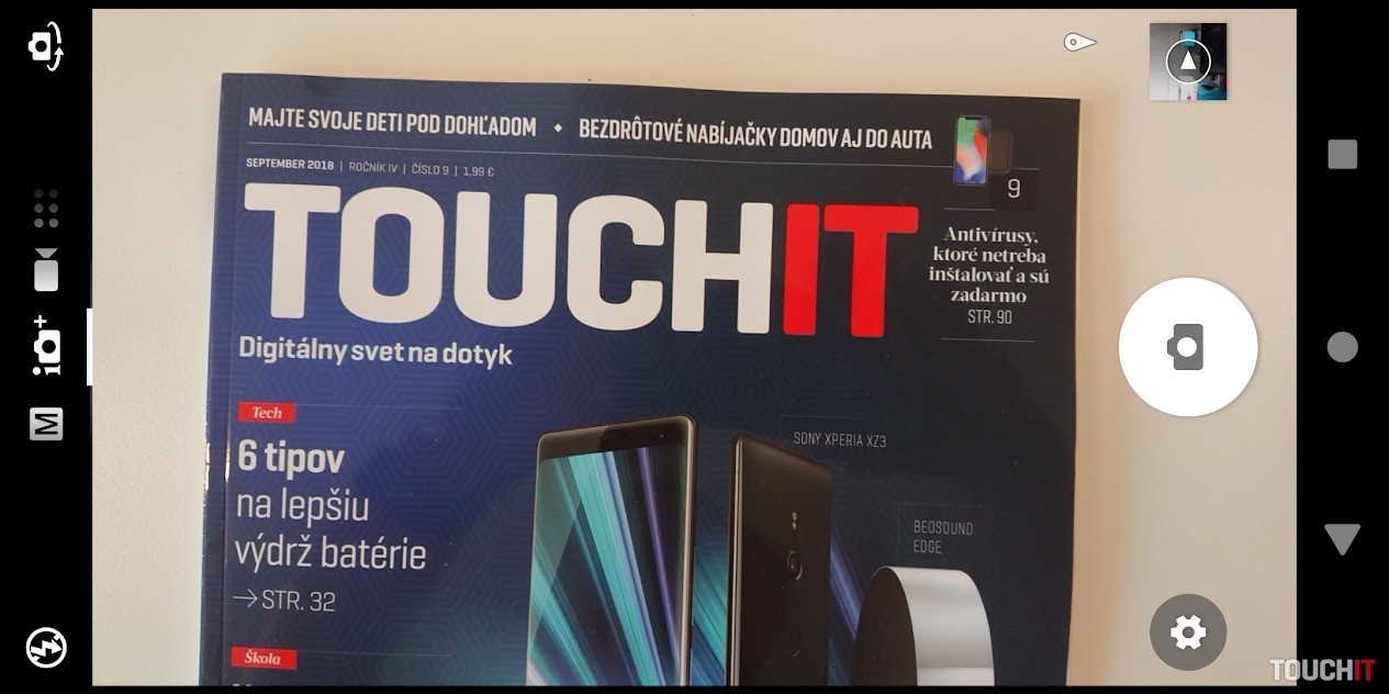 Hlavný fotoaparát veľa noviniek neprináša. Z hardvérového hľadiska je totožný ako v prípade Xperie XZ2. Ponúka 19 Mpx rozlíšenie a clonu f/2.0. Aj Sony však začalo využívať umelú inteligenciu v rámci spracovania obrazu, takže výsledné fotky sú buď takmer identické alebo o trochu lepšie v porovnaní s XZ2. Xperia XZ3 si vie napr. lepšie poradiť s prípadnými preexponovanými časťami fotky. Podrobnému porovnaniu sa budeme venovať v samostatnom článku. Je dôležité spomenúť, že Sony využíva umelú inteligenciu s mierou a fotky stále vyzerajú prirodzene. Nemusíte sa teda báť toho, že by XZ3-ka zbytočne zvýrazňovala farby, to nie. Mierne zlepšenie sme si všimli aj v prípade nočných fotiek, niektoré fotografie boli ostrejšie v porovnaní s XZ2. Na porovnanie s ostatnými novými vlajkovými loďami konkurencie si musíte počkať, pripravíme aj takýto fototest. S fotoaparátom však súvisia dve novinky. Sony zmenilo rozhranie svojej systémovej aplikácie na fotenie, ktoré je teraz prehľadnejšie. Rozhranie si pozrite na priloženom screenshote, pre porovnanie prikladáme aj screenshot z Xperie XZ2. Poteší, že súčasťou nového rozhrania je skratka pre rýchle prepnutia sa do posledného režimu, ktorý ste použili. Medzi režimami nájdete aj funkciu Google Lens, ktorá už funguje aj pre slovenské nastavenie jazyka a dokáže identifikovať objekty, text atď.