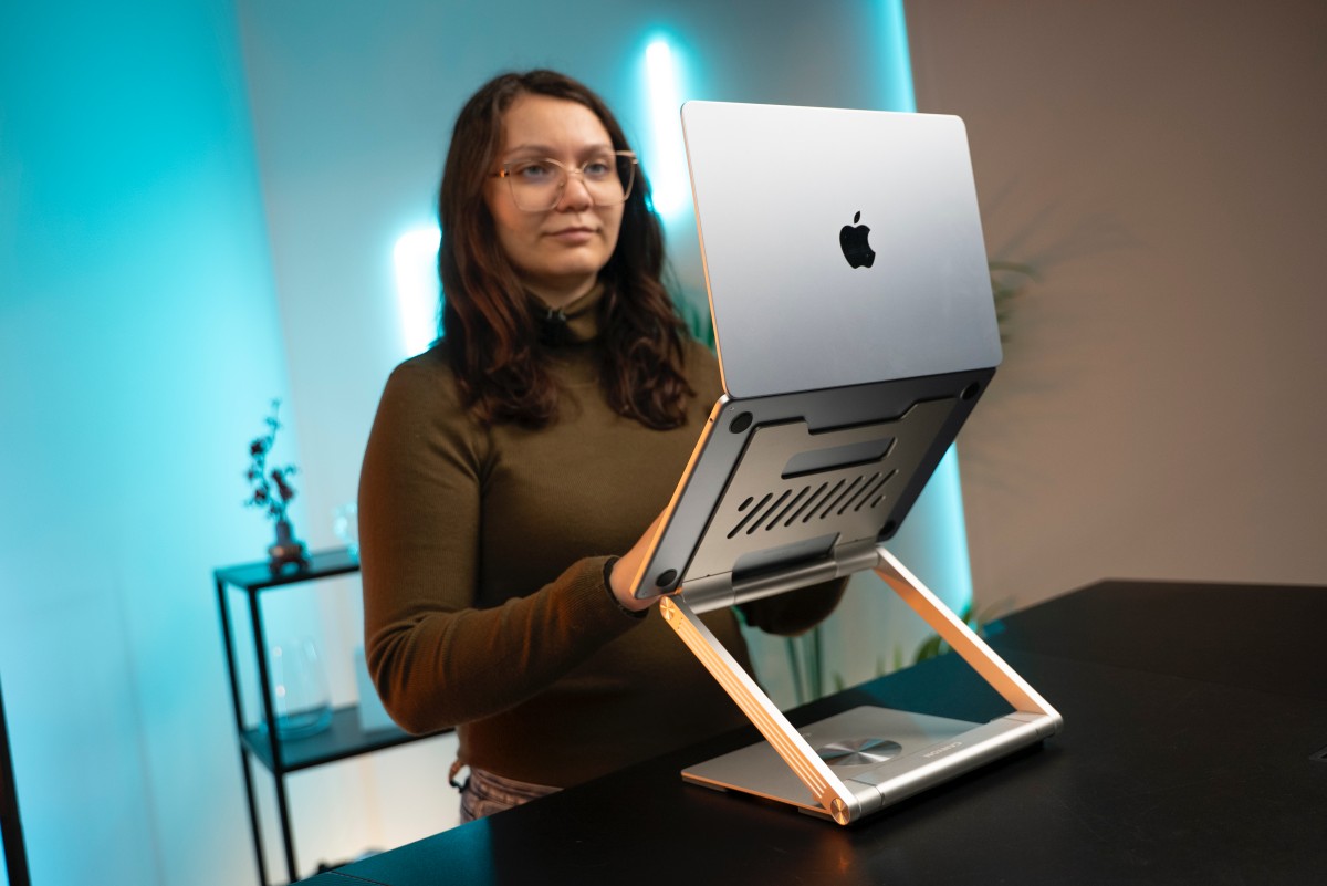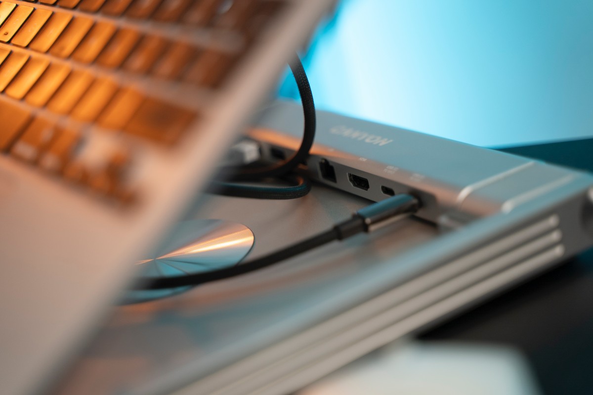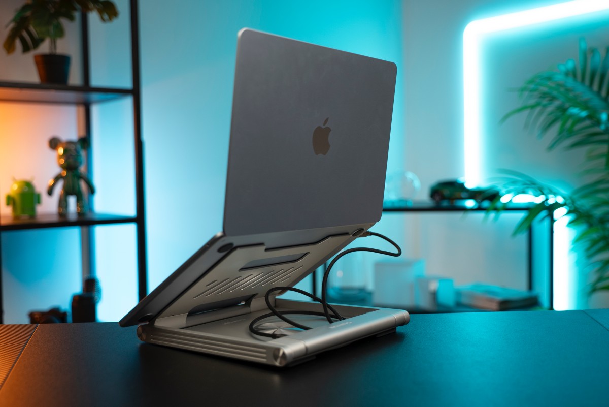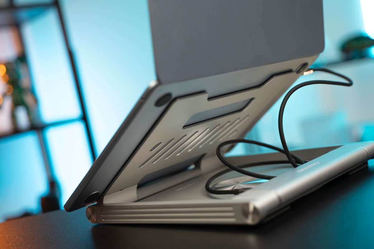 Stojan na notebook Canyon OnStand 2 spája ergonómiu s multifunkčným pripojením. Je navrhnutý pre každého, kto chce od svojho notebooku dostať viac a vylepšiť tak svoj pracovný priestor. Má otočnú základňu s rozsahom 360°, čo je využiteľné napríklad na pracovných stretnutiach, pri potrebe nastavenia uhla pohľadu či v mnohých ďalších situáciách. Je skladací, takže sa jednoducho prenáša a vďaka magnetickému odnímateľnému rozbočovaču dokáže udržať káble usporiadané. Rozbočovač dokáže premeniť jeden USB-C vstup na HDMI, Ethernet port a mnoho ďalšieho. Ponúka USB porty pre rýchly prenos súborov a 100 W nabíjanie typu PD.