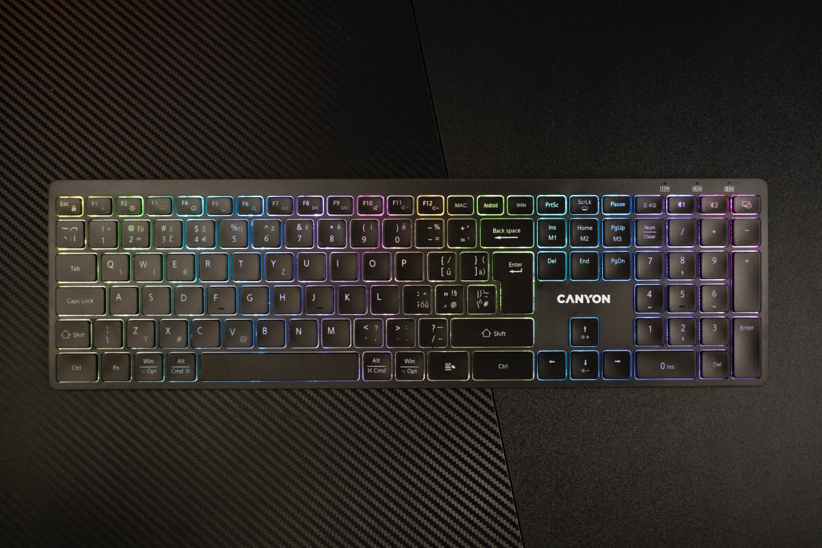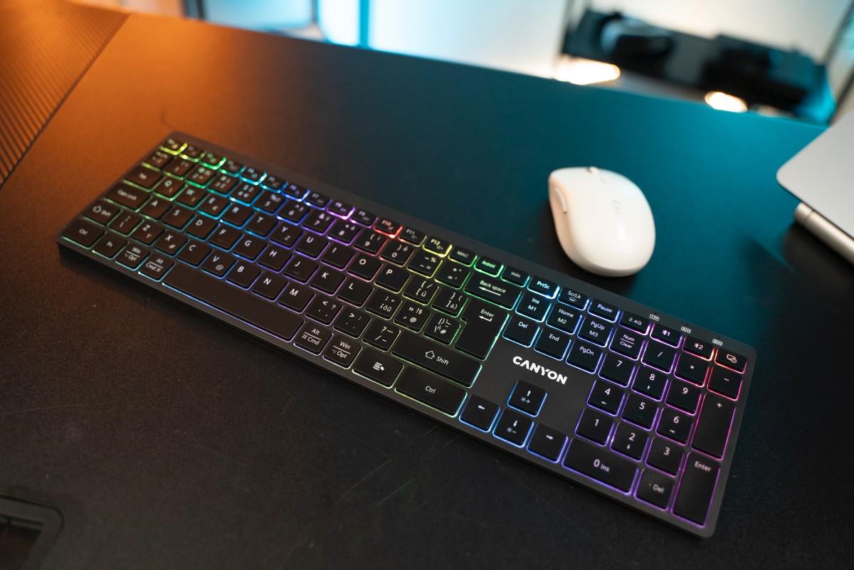 Klávesnica Canyon HKB-W11 je určená do kancelárií aj k herným počítačom či pre tvorcov. Má duálne pripojenie typu 2,4 GHz aj dva kanály Bluetooth. Vhodná je teda aj pre tých, ktorí pracujú s rôznymi zariadeniami. Klávesy majú nožnicový mechanizmus spínača, vďaka čomu sú citlivé a tiché. Životnosť 113 kláves je až 10 miliónov stlačení. Canyon HKB-W11 disponuje aj 7-farebným podsvietením RGB a osvetlením kláves, problém teda nebude ani s písaním pri slabom osvetlení. Klávesnica je dizajnovaná tak, aby bola štíhla a pôsobila moderne v každom priestore. Je dobíjateľná, kapacita batérie je 1600 mAh. Kompatibilná je so systémom Windows, macOS, iOS aj Android. Farebné vyhotovenie je čierne, šedé a biele v prípade US verzie aj lokalizovanej SK/CZ verzie.