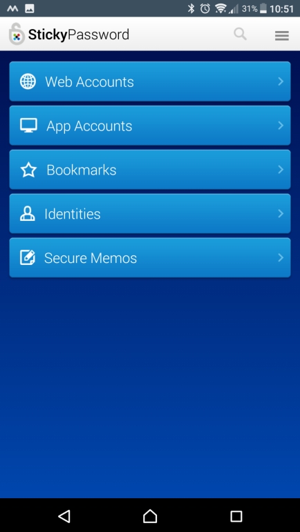 Prostredie Sticky Password je prehľadné