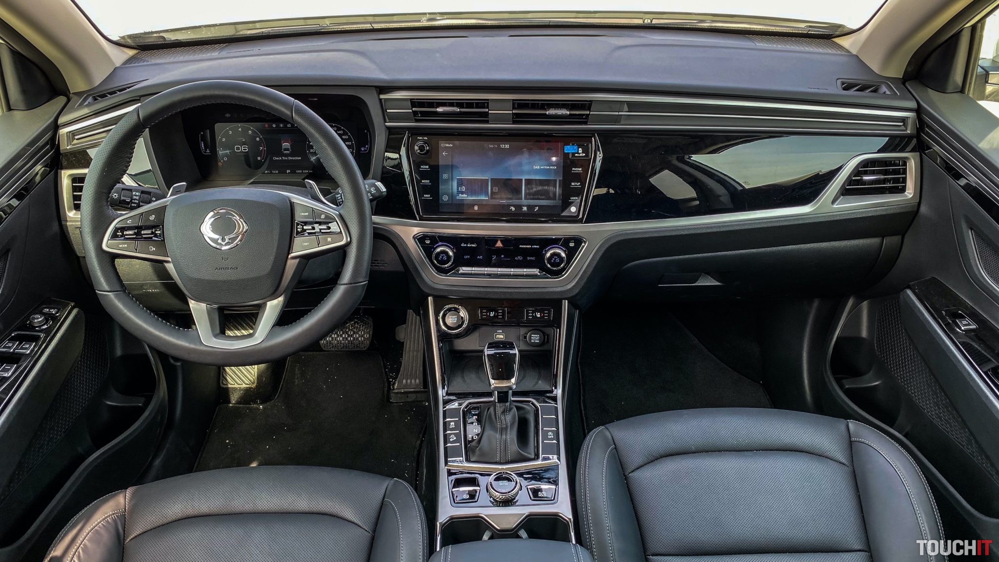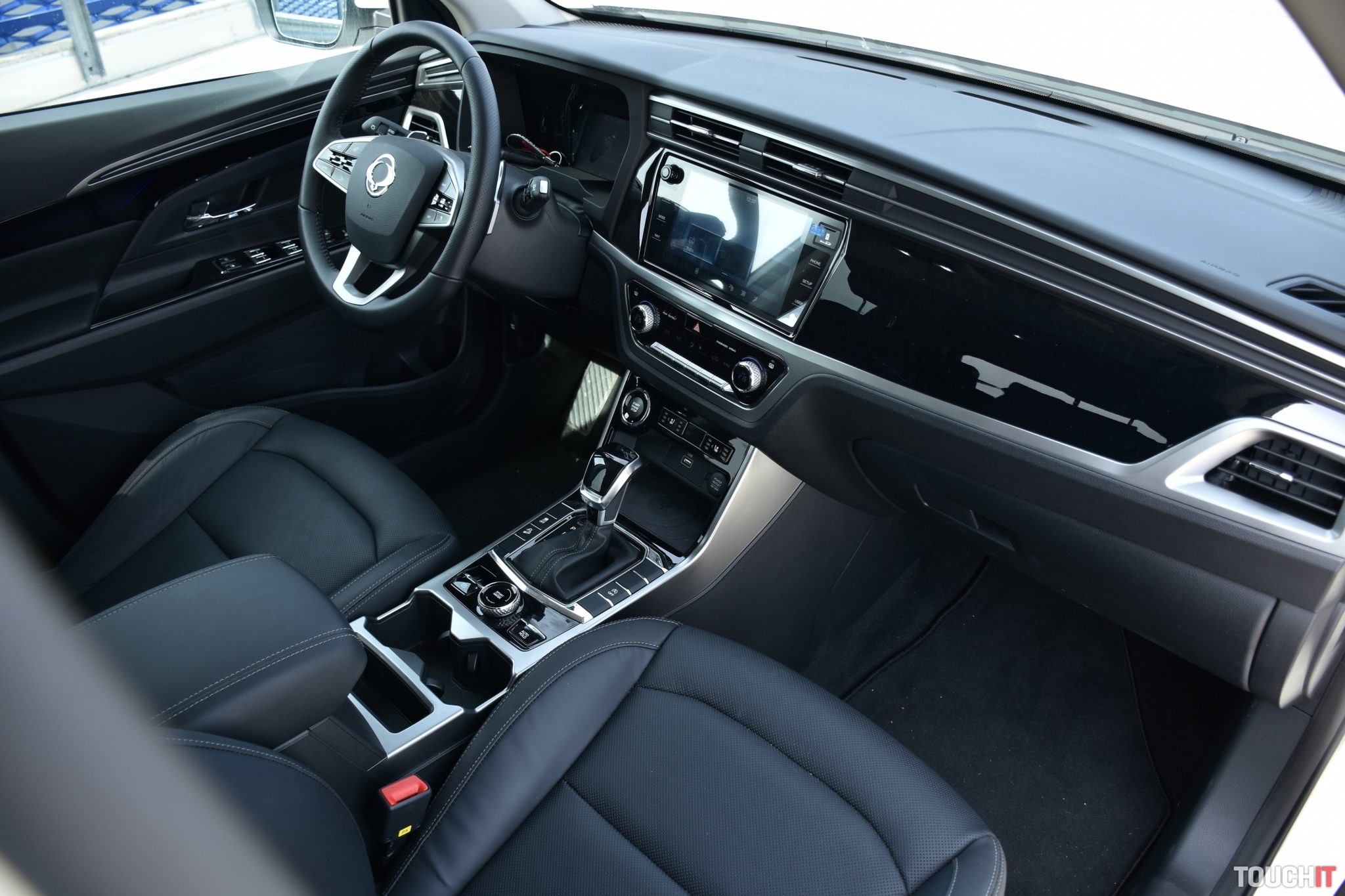 Osobne nepoznám žiadne iné auto, ktoré ponúka takú možnosť konfigurácie zobrazených údajov ako SsangYong Korando (a iné modely tejto značky). Takmer všetko, čo sa zobrazuje na hlavnom displeji je možné zrkadliť aj na prístrojový panel, vrátane aplikácií Apple CarPlay a AndroidAuto, čo som videl vôbec po prvýkrát a túto možnosť veľmi oceňujem. Až neuveriteľnú možnosť konfigurácie má na svedomí špecifický operačný systém, ktorý je podobný Androidu. To je v tomto smere výhoda, no určite treba myslieť aj na bezpečnosť, keďže je systém pripojený na internet. Verím, že kórejský výrobca na to myslel a má to dobre zvládnuté. Ako som spomenul vyššie, centrom diania je 9“ dotykový displej v strede palubnej dosky, ktorý ponúka rovnako peknú grafiku. Aj tu nájdete extrémne množstvo informácií a možnosť rozsiahlej konfigurácie systému a nastavení vozidla, vrátane asistenčných systémov, ktorých ponúka tento model viac než by ste očakávali – aktívne monitorovanie okolia vozidla s autonómnym brzdením v prípade núdze, monitorovanie mŕtvych uhlov, asistent bezpečného vystupovania z vozidla, sledovanie pozornosti vodiča, asistent prepínania diaľkových svetiel, asistent rozjazdu do kopca, aktívna ochrana proti prevráteniu vozidla, upozornenie na premávku za vozidlom, asistent zjazdu z kopca, parkovací asistent (zadná kamera + PDC senzory) a v neposlednom rade je to aj adaptívny tempomat, ktorý spolupracuje s aktívnym vedením vozidla v jazdnom pruhu (táto dvojica ma príjemne prekvapila presnosťou). Samozrejmosťou je nie len nadštandardná aktívna bezpečnosť, ale aj pasívna, ktorej dôkazom je 5 hviezdičiek v hodnotení EURO NCAP. Z multimédií vypichnem slušný audio systém a plnú konektivitu (Bluetooth, Wi-Fi, USB-A + slot pre microSD karty), vrátane podpory aplikácií Apple CarPlay a Android Auto. Z komfortných prvkov nechýba automatická 2-zónová klimatizácia, vyhrievané čelné sklo, vyhrievaný volant, bezkľúčový vstup do auta a rovnako aj štartovanie. Ešte než sa dostanem k druhému radu musím dodať, že celý interiér je až na pár detailov veľmi pekne spracovaný. Páči sa mi krátka palubovka, ako aj jej všeobecné prevedenie, ktoré pôsobí trošku luxusným dojmom. Osobne by som zmenil iba veľké plochy s klavírnym lakom, ktoré sú výstavnou skriňou prachových častíc. Spomenúť musím ešte jeden neduh – počas testu som sa silnejšie zaprel do sedadla vodiča, pričom vyskočil zadný plast s poťahom, ktorý kryje celé sedadlo, resp. vnútornú techniku a následne sa mi to počas testu stalo ešte párkrát (nevedel som ho dostať naspäť tak, aby pevne držal). Tak, a teraz ten druhý rad sedadiel, ktorý je ďalším bonusom, a to najmä z pohľadu priestoru. SsangYong Korando je jedným z mála áut, kde si dokážem s mojou výškou sadnúť sám za seba (nie v úplnom pohodlí, ale cestovať by sa dalo), a to aj napriek tomu, že rázvor nemá nadštandardnú dĺžku (2675 mm). Sedenie v druhom rade je pohodlné, zmestia sa sem tri deti alebo dvaja dospelí jedinci (pri zachovaní plného komfortu) a prítomná je aj lakťová opierka. Osobne mi tu chýba centrálny výduch ventilácie a USB-A porty na nabíjanie zariadení (náhradou je menič napätia na 230V s klasickou zásuvkou). Za benefit považujem nastaviteľné operadlá v druhom rade, čo oceníte najmä počas dlhých ciest. Postupne sa dostávame do batožinové priestoru, no ešte dodám, že operadlá sú delené v menej vyhovujúcom pomere 60:40 bez stredovej diery na dlhé predmety. Do batožinového priestoru sa dostanete cez elektricky ovládané 5 dvere a k dispozícii máte 551 litrov (407 litrov s rezervným kolesom). Tento priestor ponúka praktické delenie a dvojité, resp. až trojité dno.Motor a jazdné vlastnosti