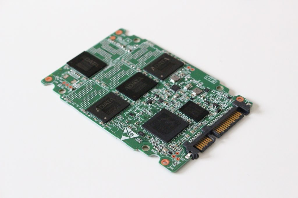 Vo vnútri disku sa ukrýva plošný spoj polovičnej veľkosti, osadený štyrmi pamäťovými puzdrami len z jednej strany. Aj tu platí, že 120 GB verzia zdieľa PCB s 240 GB verziou. Pamäťové puzdrá sú označené ako ADATA 60076041 a v každom by mali byť po dva 128 Gbit čipy Micron s MLC NAND bunkami vyrábanými 16 nm technológiou. Z druhej strany PCB je osadený radič JMicron JMF670H a DDR3 cache Nanya s kapacitou 128 MB.
