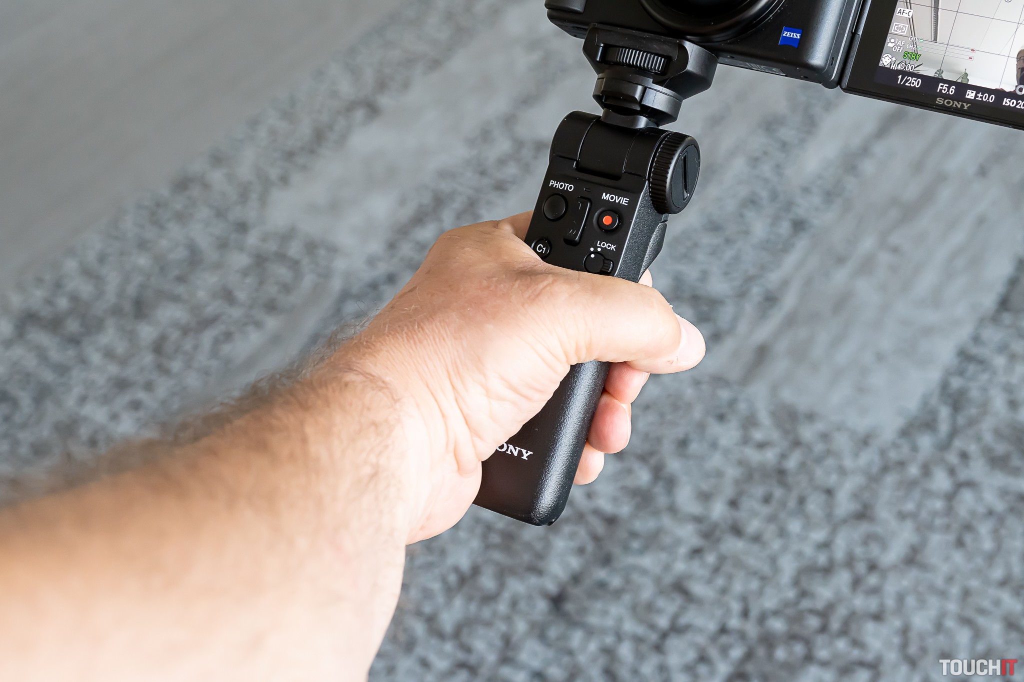Pre ďalšie zľahčenie tvorby videa je tu externý grip s komplikovaným označením GP-VPT2BT. Ten je ku kamere pripojený bezdrôtovo cez Bluetooth a tiež slúži ako statív.