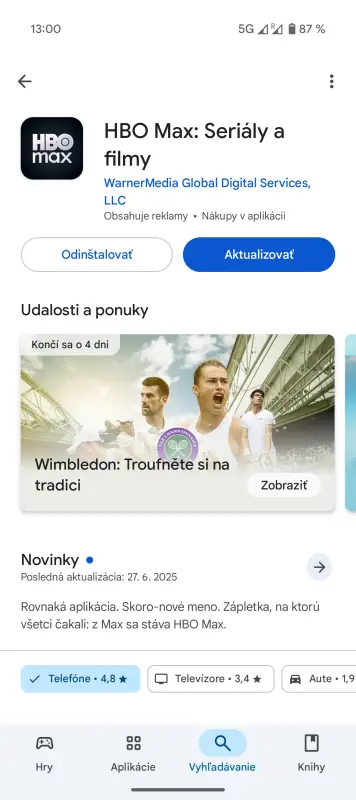 Označenie HBO Max už nájdete aj v aplikácii, aj na webe.