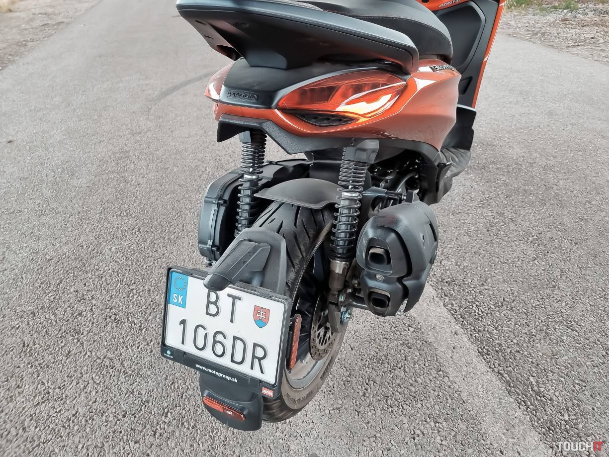 Piaggio je luxusná značka skútrov a rad Beverly vyzerá a funguje výborne. Model S 400 HPE patrí k novinke a je to skúter s objemom jednovalcového motora 400 ccm a výkonom 26 kW pri 7500 ot/min. Spája v sebe štýl a pohodlie. Pod sedlom je úložný priestor na jednu integrálnu prilbu a menšie veci. Ocenili sme displej dobre viditeľný za každého počasia. Má extra výkonný motor s krútiacim momentom 37,7 Nm pri 5500 ot/min, automatickú prevodovku Twist and Go CVT a všimnete si aj detaily ako napr. tónované čelné sklo. Tento skúter pôsobí štíhlo, aj dizajnovými detailami pripomína športového duchy. Testovali sme verziu touring s dvojúrovňovým sedadlom. Beverly S 400 HPE sa predáva v čiernej a červenej farebnej verzii. Výška sedla je 795 mm. K dispozícii je aj mobilná aplikácia, ktorá v sebe obsahuje napr. denník jázd. Cena skútra je 6299 eur a požičali sme si ho v Motogroup.skPodobné články