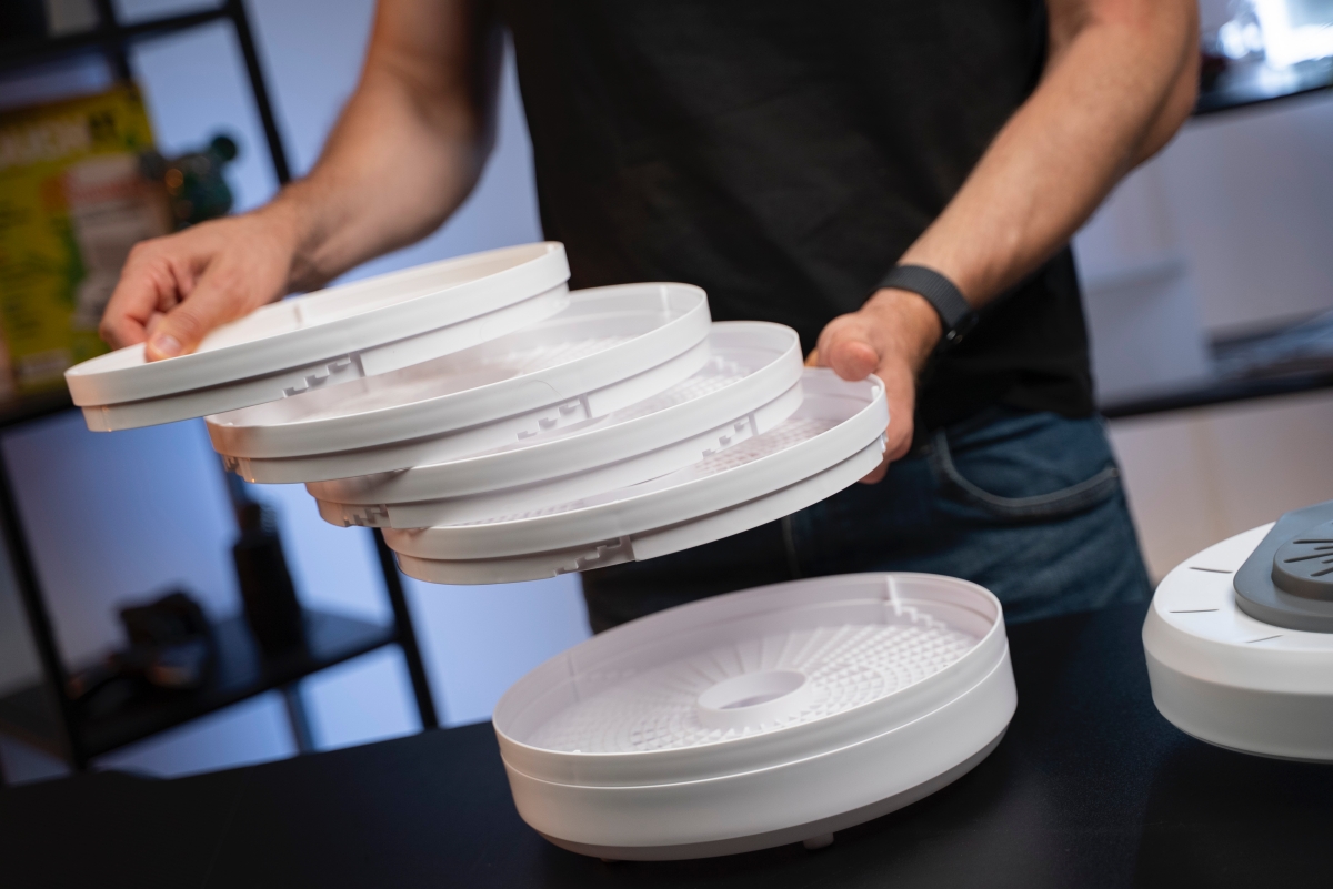 Sušička sa nijako špeciálne nenastavuje. Má iba tlačidlo na zapnutie/vypnutie a musíte ju teda vždy po spustení aj vypnúť. Nemusíte sa však obávať, zabudovaný termostat zabráni prehriatiu a tepelná poistka zariadenie vypne. K sušičke je pribalený aj návod, v ktorom sú potrebné informácie k sušeniu jednotlivých druhov potravín.