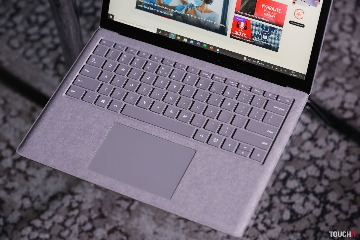Pohodlný, dostatočne veľký a kvalitný je tiež touchpad. Mimochodom, na Surface notebookoch som si obľúbil semišovú povrchovú úpravu klávesnicovej časti a takisto dva režimy klávesu Function – môžete si zvoliť, či majú klávesy F1 až F12 predvolene slúžiť na tento účel alebo na multimediálne funkcie.