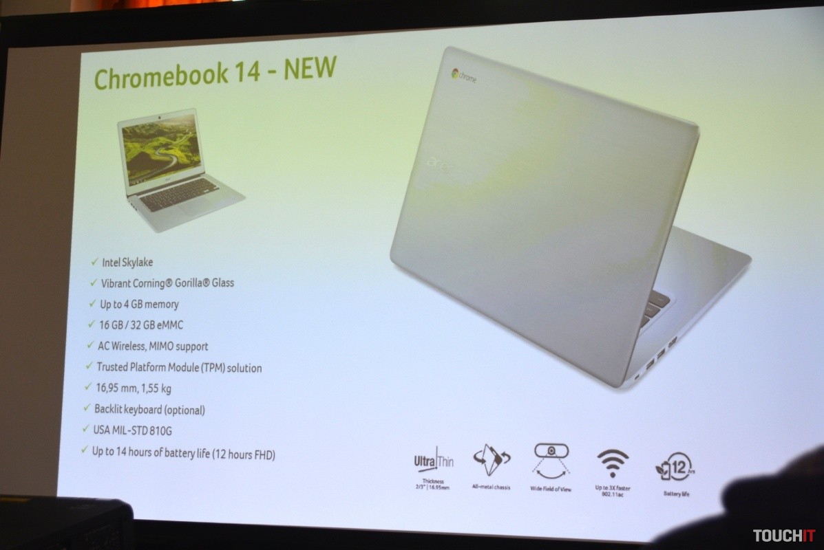 Na našu prednášku nadväzovala aj prezentácia spoločnosti Acer a Vladimír Jamrich prezentoval novinky z New Yorku. Teda herné počítače, zariadenie Acer Switch 12 S, dokovacie stanice a tiež Chromebooky.