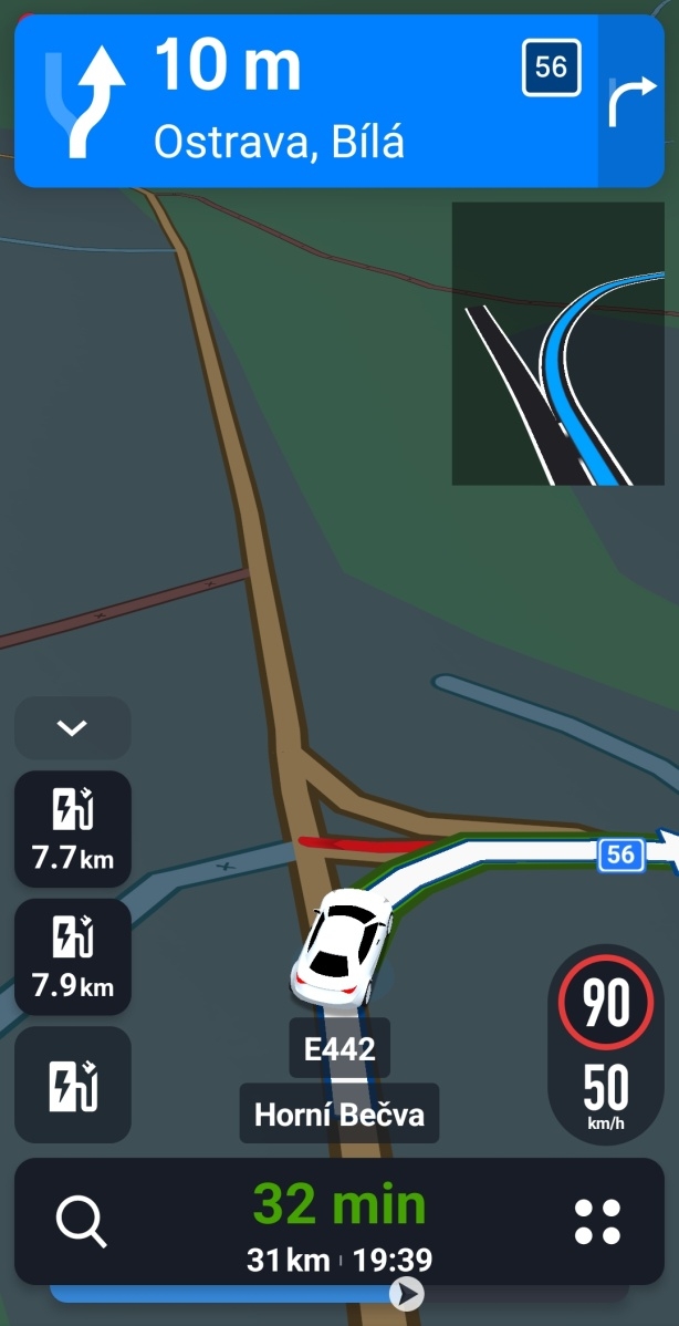 Obľúbená funkcia Junction View tiež prešla zmenami. Keď sa šofér blíži ku križovatke, detailný náhľad jazdných pruhov sa otvorí len v hornej polovici obrazovky tak, aby nezakrýval samotnú mapu.