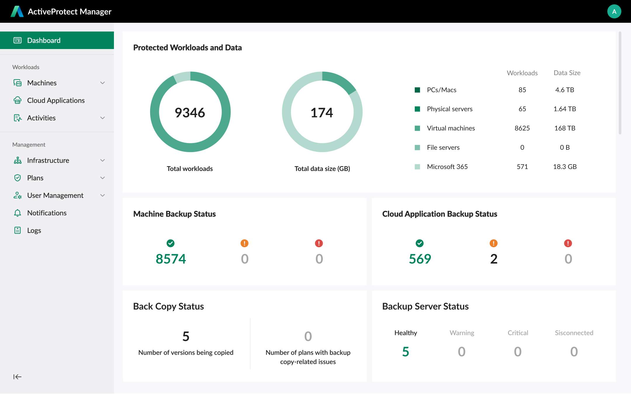 Z jedného rozhrania sa dajú zálohovať počítače (PC aj Mac), fyzické servery (Windows, Linux), virtuálne stroje (VMware, Hyper-V), databázy, súborové servery a cloudové služby ako Microsoft 365 či Google Workspace.
