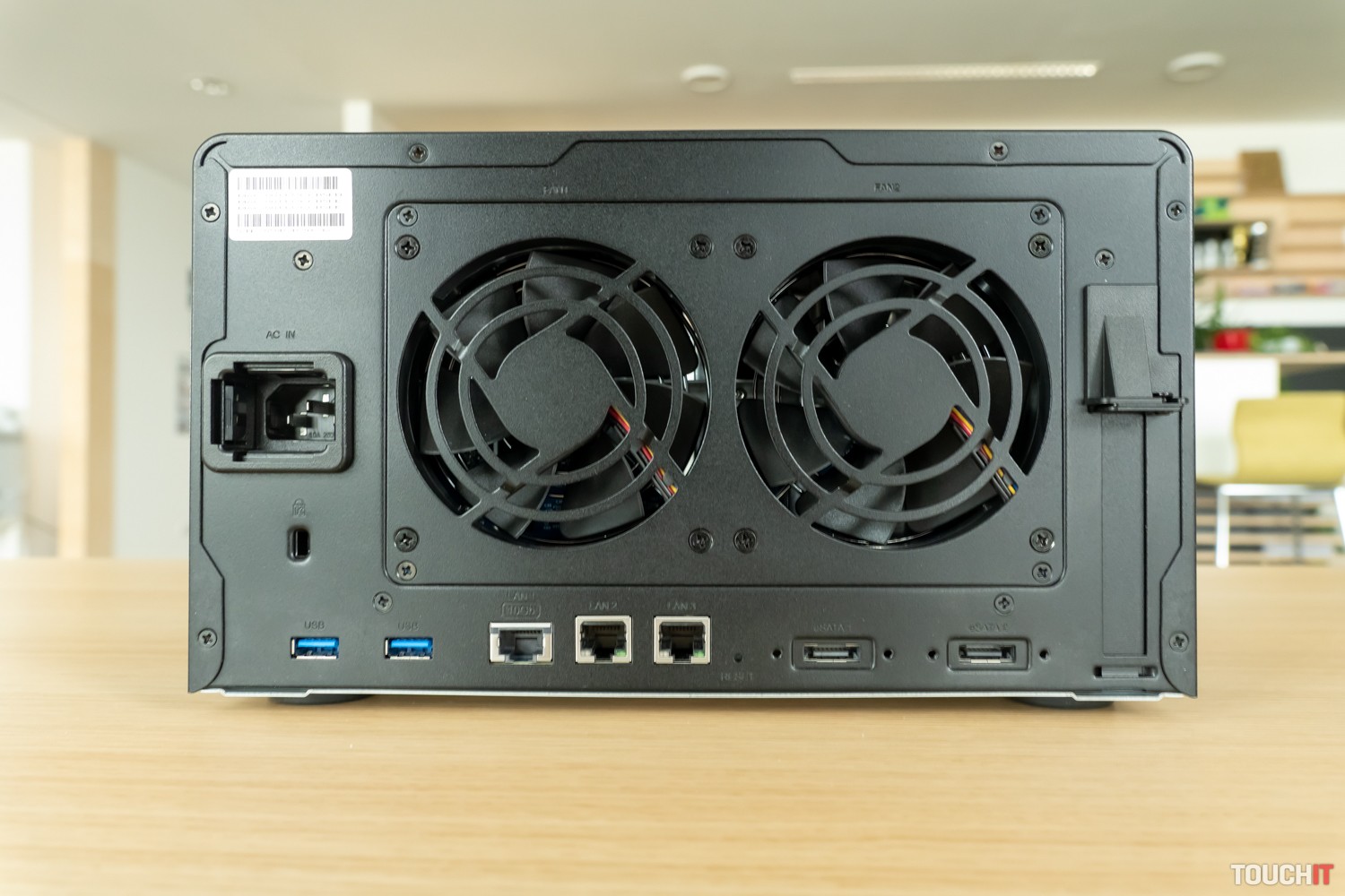 Silnou stránkou aj jej výkon. Stanica má pripojenie na 10 GbE sieť. Tým získavate skutočnú rýchlosť na prácu veľkého tímu ľudí. Do firmy je to ako stvorené. Môžete si na systéme rozbehať vlastné emaily, webovú stránku alebo virtuálny systém. A teraz malá perlička. K zariadeniu sme sa pripájali cez Wi-Fi 6 router, ku ktorému bolo NAS pripojené cez 1 Gb/s port. Pri inštalácii či kopírovaní dát to vyzeralo ako práca s externým USB 3.0 diskom. Na základe odozvy a pohotovosti zariadenia sa nedalo na prvý pohľad poznať, že dáta nie sú v počítači. Iste, meraniami sa to dalo zistiť. Ale reálna prevádzka a požiadavky boli takmer okamžité. V každom prípade je dostupnosť rýchleho LAN pripojenia kľúčovou záležitosťou pre tento model NAS. 10 GbE porty tu máte hneď dva a tak sa dajú využiť na zrýchlenie dátového prenosu v jednej sieti a nakoniec je tu ešte tretí LAN port, ten s rýchlosťou 1 GbE. K tomu sú tu dva USB 3.0 porty na zadnej strane a jeden na prednej a dva porty eSATA.