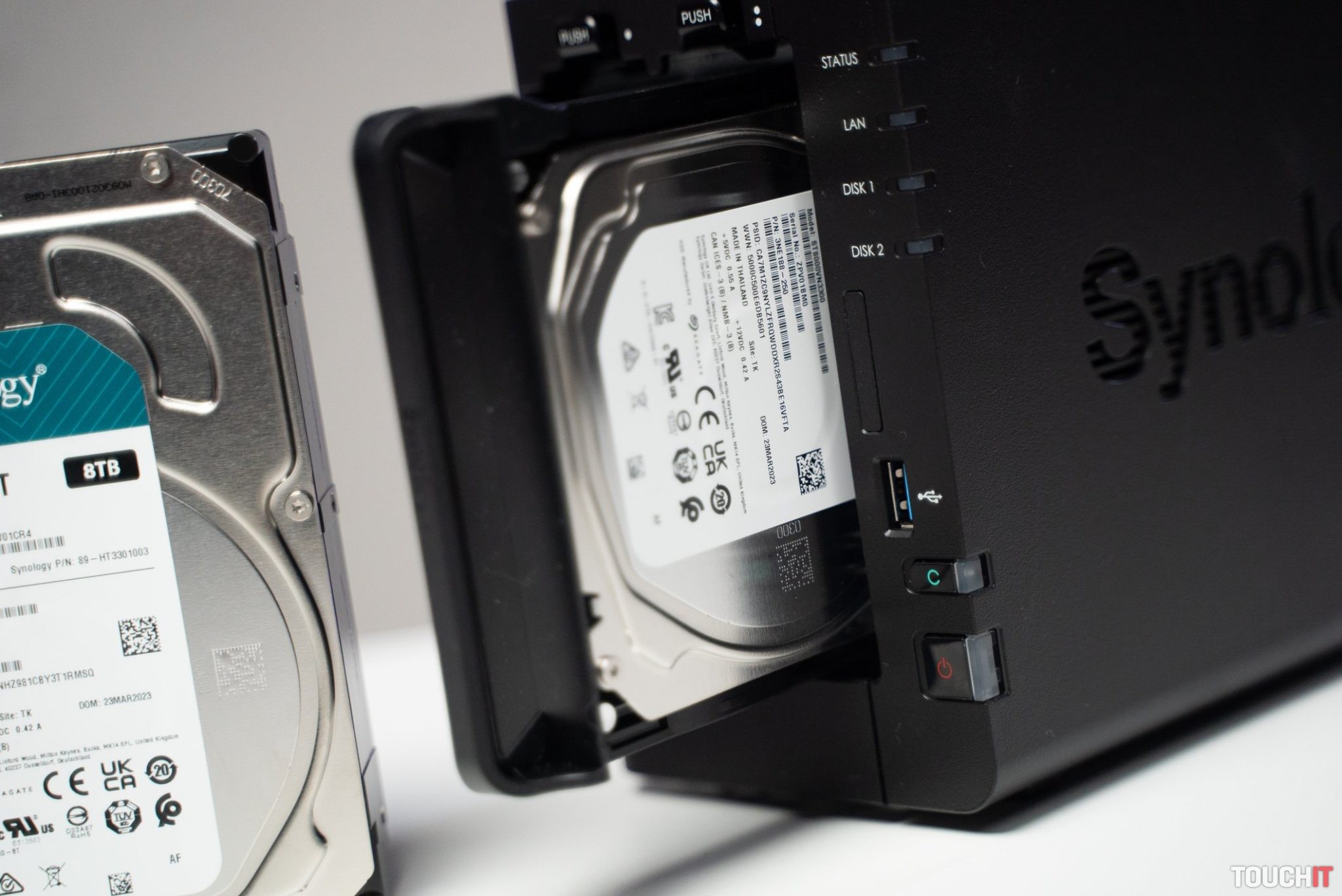 Disky vo verzii Plus sme testovali v kapacite 8 TB. K dispozícii sme mali 2 disky, keďže aj sieťové zariadenie Synology je dvojdiskové. Ide o modely s 5400 otáčkami za minútu, 256 MB cache pamäťou a maximálnou prenosovou rýchlosťou 202 MB/s. To bude postačovať aj pre rýchle domáce či firemné LAN siete.