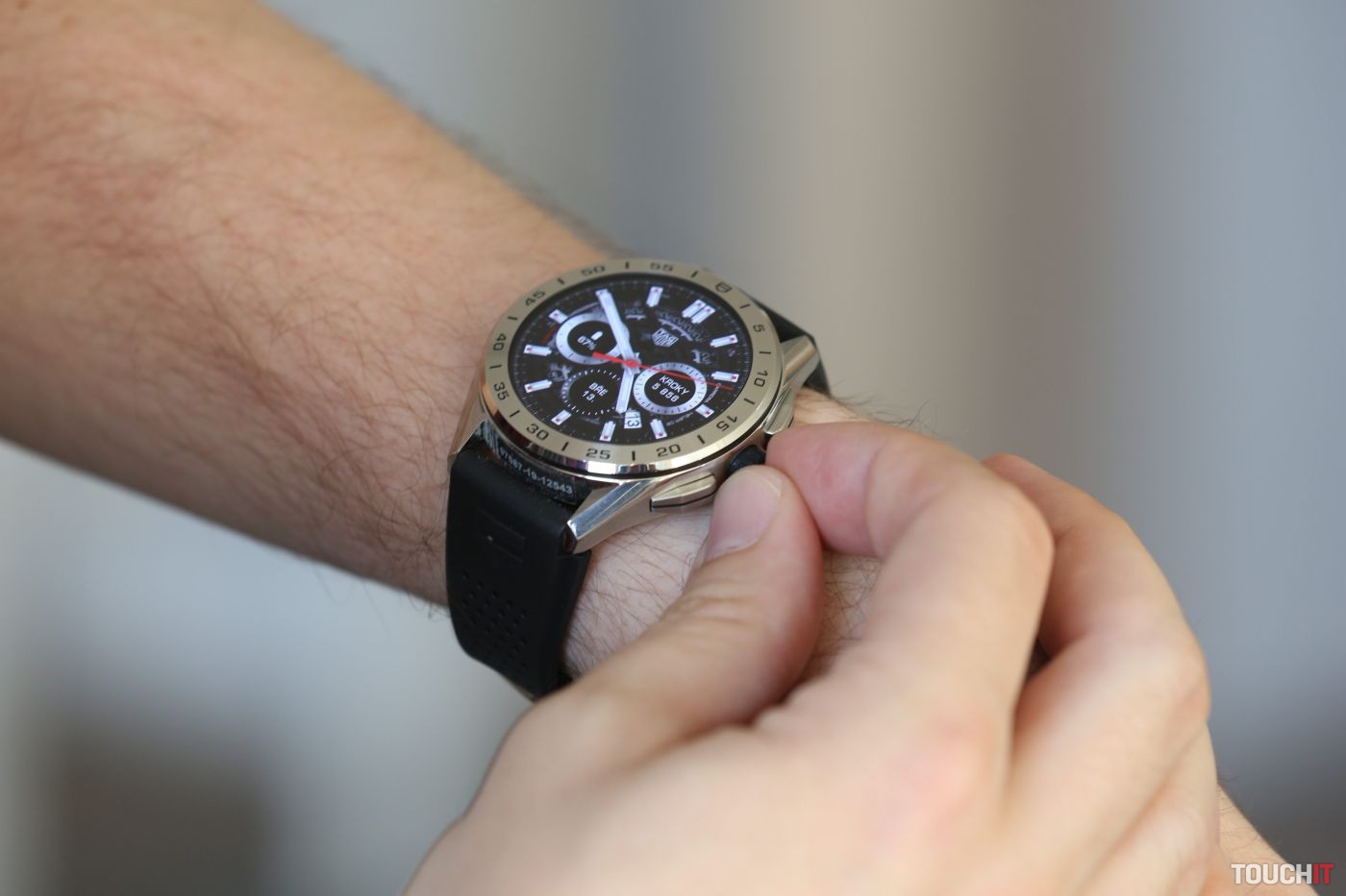 Reakcie hodiniek boli pomerne svižné, avšak treba počítať s tým, že po prvom zapnutí sa na pozadí spustí viacero aktualizácií a tie vyťažia procesor na maximum. Wear OS má v aktuálnej verzii nastavené, aby sa veľké aktualizácie sťahovali počas nabíjania, takže by vás to nemalo iritovať. Občasne sa však pri spúšťaní aplikácií môže objaviť krátke spomalenie. Hodinky tiež ponúkajú kompletnú výbavu športových senzorov. Nechýba senzor tepu, GPS, kompas, akcelerometer a gyroskop. My sme testovali verziu s kaučukovým remienkom a ten je pohodlný aj pri cvičení. Samotné hodinky majú v oceľovej verzii 108 gramov, ich výška je 13,5 mm. Tieto parametre sme počas cvičenia cítili v porovnaní s Huawei Watch GT 2, ktoré majú 10,7 mm výšku a 41 gramov bez remienku. TAG Heuer Connected sa nám aj napriek väčším rozmerom a hmotnosti nosili na ľavej ruke pohodlne, nič nám neprekážalo. S hodinkami takisto môžete plávať, majú odolnosť voči vode na úrovni 5 ATM.