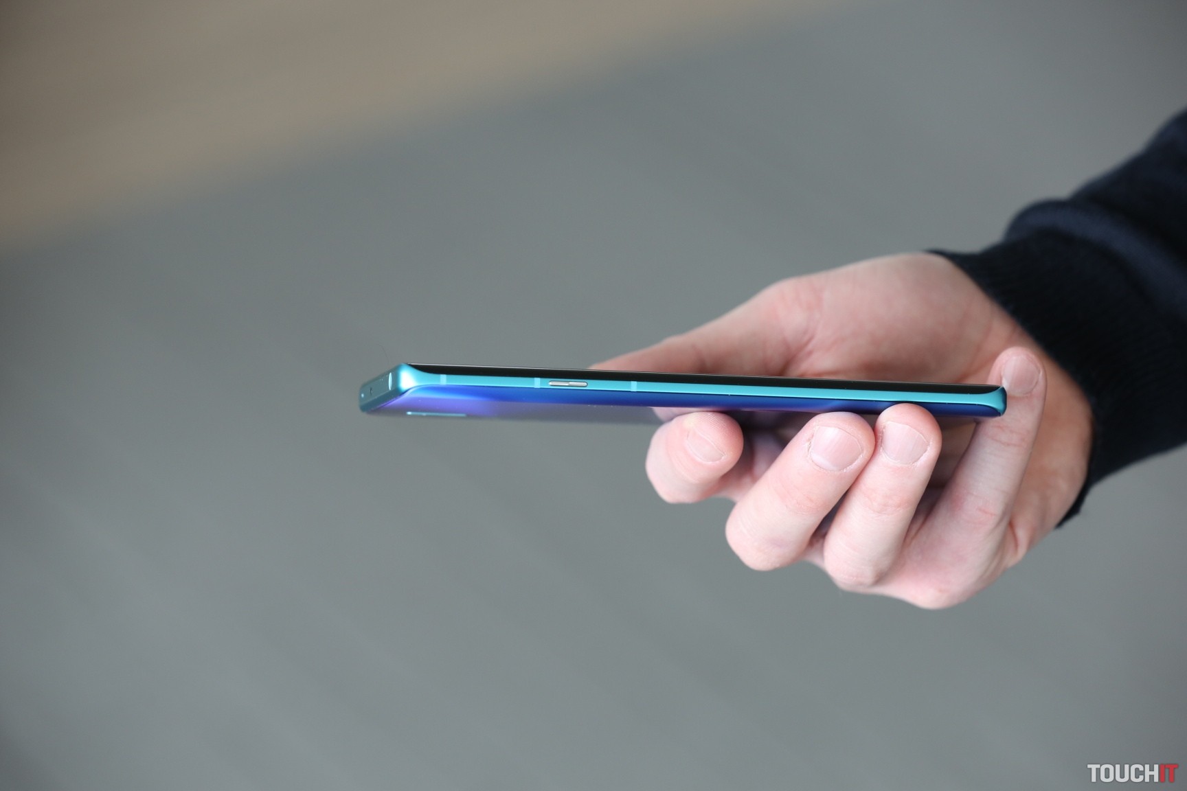 Telefón je zaoblený spredu aj zozadu a nielen po konštrukčnej stránke šasi ale aj displejom. Priaznivci takýchto displejov tu za svoje peniaze dostanú zážitok z veľkého displeja, ktorý pokrýva 93 % prednej časti. Telo je predĺžené a má pomer strán 20:9 s prierezom na selfie kameru uprostred. Telefón je ale zaujímavý iným detailom. Samostatné tlačidlo na ľavej strane nie je primárne vyhradené pre asistenta. Môžete mu prideliť vlastnú funkciu a to na jedno, dvojité alebo dlhé stlačenie. Toto je naozaj užitočná vec a chválime výrobcu k pristúpeniu na tento krok.