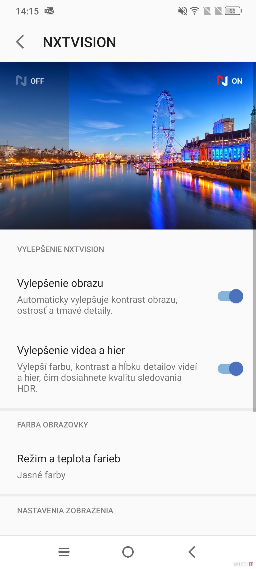 Nedá sa prehliadnuť a výrobca do neho vložil všetky podstatné technológie ako podporu HDR10+ alebo certifikované parametre na ochranu pred modrým svetlom. Škoda, že tu nie je podpora viac ako 60 Hz frekvencie, no v zásade ani toto sa nedá výrobcovi vytknúť. Už na prvý pohľad je jasné, že dostanete kvalitu a technológia NXTVISION 2.0 je vlastne hlavným lákadlom na tento smartfón. Obraz vyzerá veľmi dobre aj na priamom slnku, a ešte väčší rozdiel uvidíte pri fotografovaní. Práve umelá inteligencia výrazným spôsobom vylepšuje fotografické výsledky. Telefón má zabudovanú funkciu SDR na HDR, teda aj filmy v horšej kvalite vyzerajú dobre a oplatí sa ich pozerať na tomto displeji. Toto som si vyskúšal na starých AVI súboroch s archívom niektorých seriálov. Výsledok je vynikajúci. Nutné ale dodať, že toto majú aj niektoré notebooky, hoci len sporadicky. Snímač odtlačkov je pod displejom a funguje vynikajúco. V minulosti som mal isté výhrady k fungovaniu tohto snímača, no tu je všetko, ako má byť. Rýchle je aj odomykanie tvárou a dá sa považovať za bezpečné, keďže minimálne vás neodomkne s nasadením rúškom.