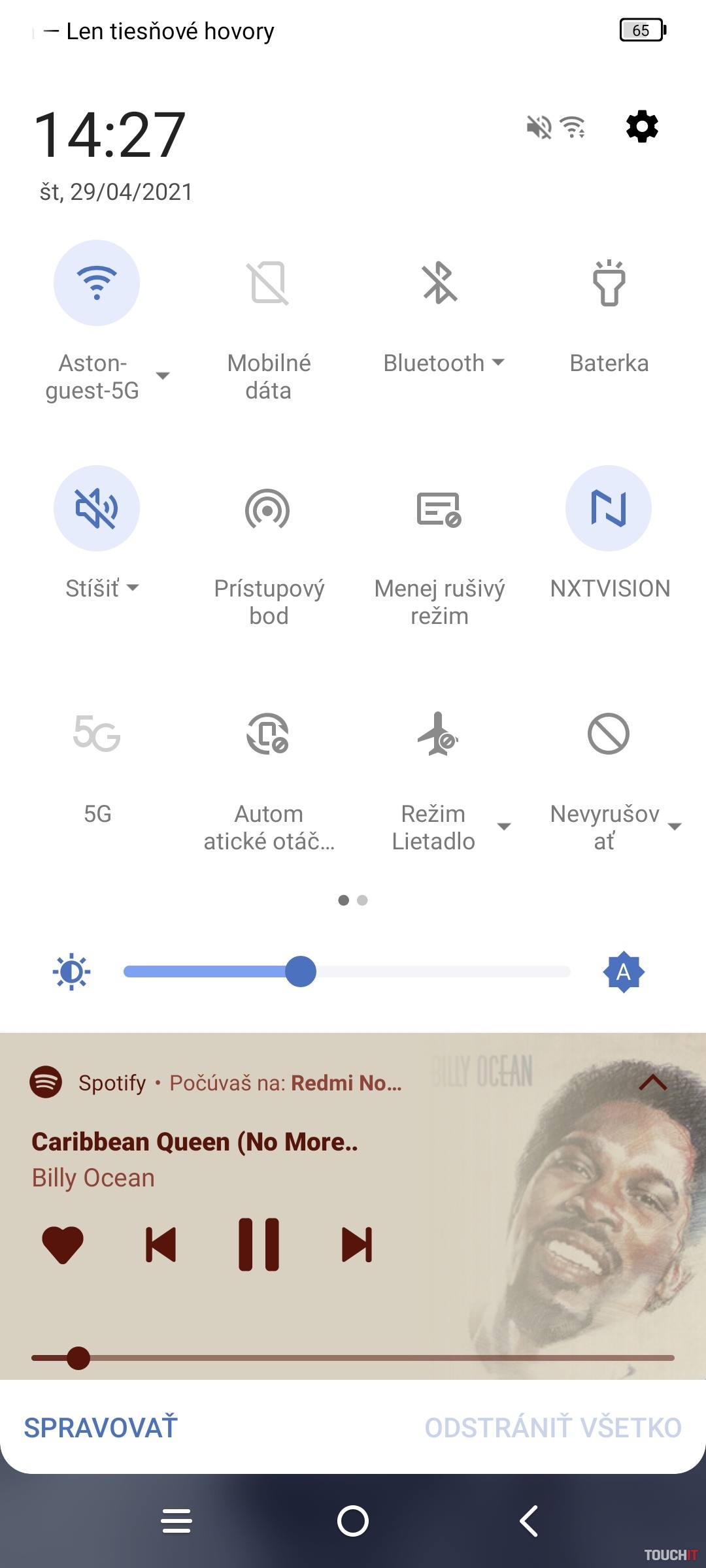 Nadstavba systému je rýchla, no CPU Snapdragon 750G je sám o sebe rýchly. Prostredie je upravené a pôsobí jednoduchým ale prehľadným dojmom. Poznať, že toto nie je čistý Android, zároveň ale rozhranie nie je prepchaté na nepoznanie. Hlavné menu s aplikáciami sa dá triediť do rôznych skupín. Tí z vás, čo máte množstvo aplikácií, v tom nájdete obľubu. Použiť sa dá ale klasické abecedné rozloženie. Je tu 6 GB RAM čo s prehľadom postačuje. Občas sa stávalo, že sa nejaká aplikácia zasekla, no to len sporadicky. Pravdepodobne ide o nejaký rozšírenie od TCL, ktoré napríklad Spotify ukáže v malom ušku zboku displeja. Takto sa dá aplikácia zapnúť po pripojení slúchadiel s Bluetooth. Istejšia cesta je uško aplikácie gestom skryť a Spotify zapnúť cez ikonu na domácej obrazovke. Inak je rozhranie stabilné a nemám k nemu zásadné výhrady. Menšie anomálie sa dejú na všetkých telefónoch. Pozornosť zaslúži aj panel so skratkami systému. Výrobca sem pridal množstvo užitočných tlačidiel a tak máte možnosť prepínať podporu 5G. Hodí sa vtedy, keď chcete 5G, no nie všade máte dobrý signál a tak v istých prípadoch radšej uprednostníte 4G LTE. Ďalšie skratky vidíte na obrázkoch, tu si dal výrobca naozaj záležať.