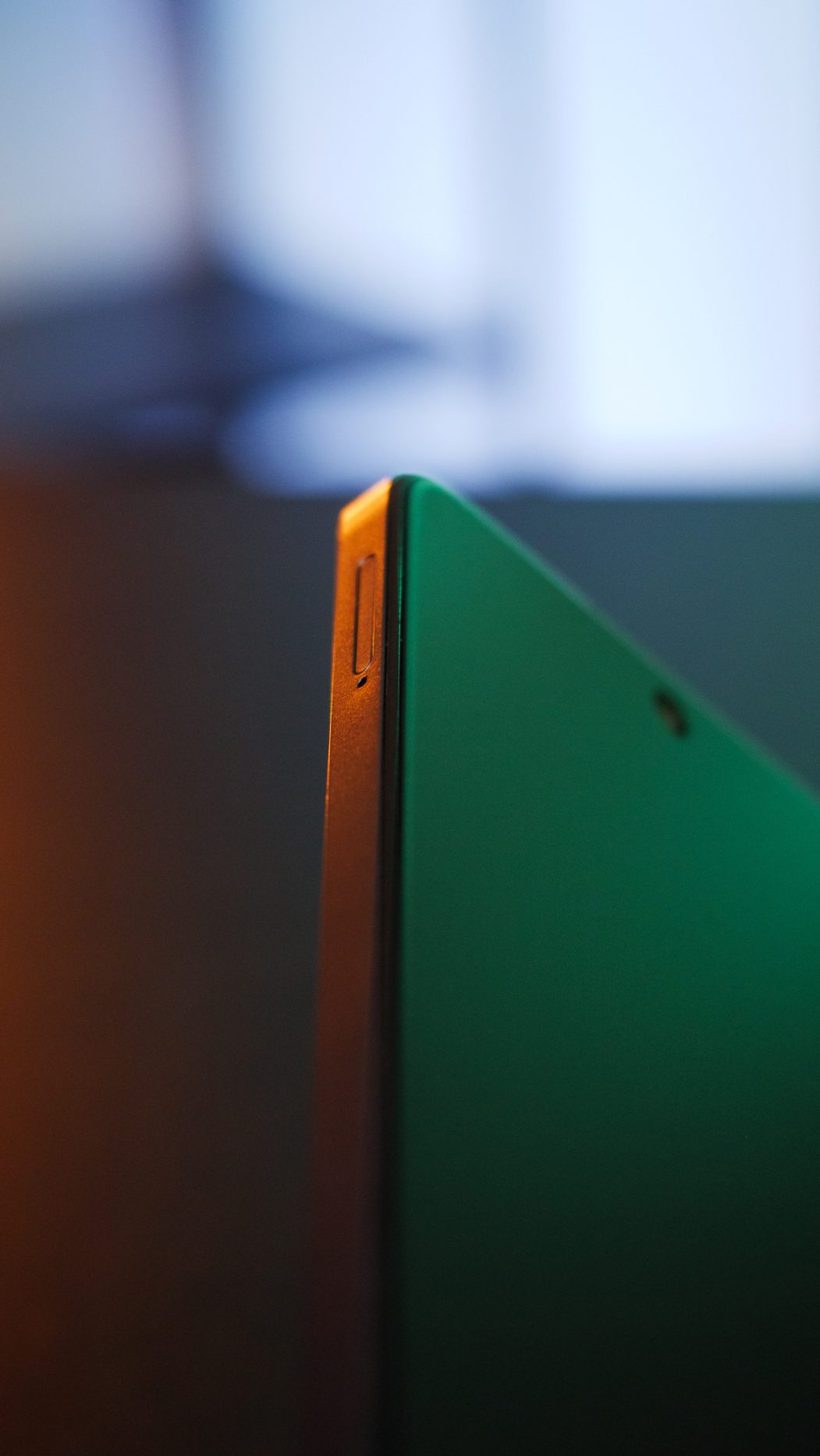 Samotná predná strana vyzerá inak. Je to dané tým, že displej má špeciálnu konštrukciu a jeho technologická výhoda je zapracovaná priamo v displeji. Nejde teda len o elektronickú podobu vo forme nastavenia a úpravy farieb. Displej je certifikovaný na zníženú produkciu modrého svetla a má tri režimy fungovania. Tie sú šetrné voči namáhaniu očí a svojím výzorom simulujú displej v elektronických čítačkách kníh.